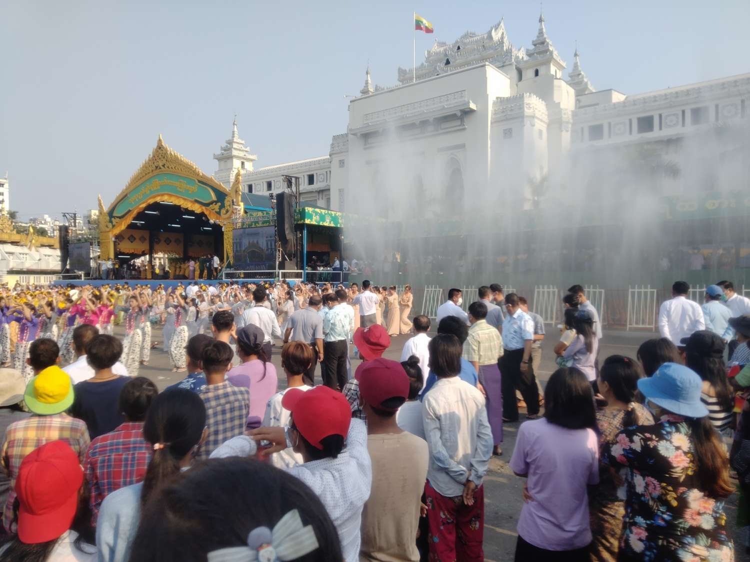 အခမ်းအနားတွင် ရန်ကုန်တိုင်းဒေသကြီး ဝန်ကြီးချုပ် ဦးစိုးသိန်းက နှစ်သစ်ကူး နုတ်ခွန်းဆက်စကား ပြောကြားပြီး အခမ်းအနားအား ဖဲကြိုးဖြတ်ဖွင့်လှစ်ခဲ့သည်။ ဆက်လက်ပြီး အနုပညာရှင်များမှ မြူမှုန် ဝေကင်းတေးသီချင်းဖြင့် သီဆိုပြီး အမေများအဖွဲ့မှ ယိမ်းအကများဖြင့် ဖျော်ဖြေခဲ့သည်။ ထို့နောက် တေးသံရှင်များမှ အလှည့်ကျတေးသီချင်းများဖြင့် ဆက်လက်ဖျော်ဖြေခဲ့ကြောင်း သတင်းရရှိသည်။