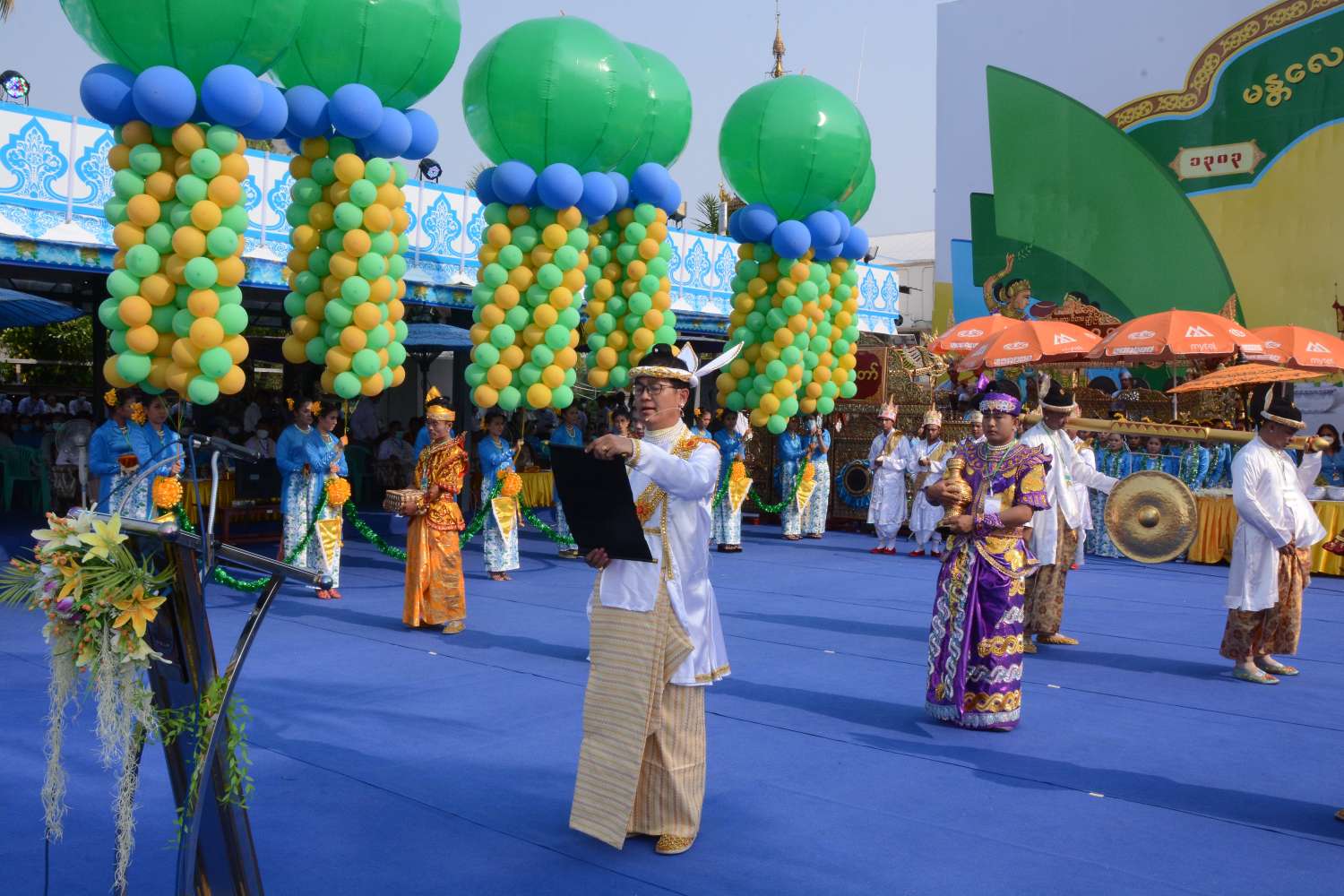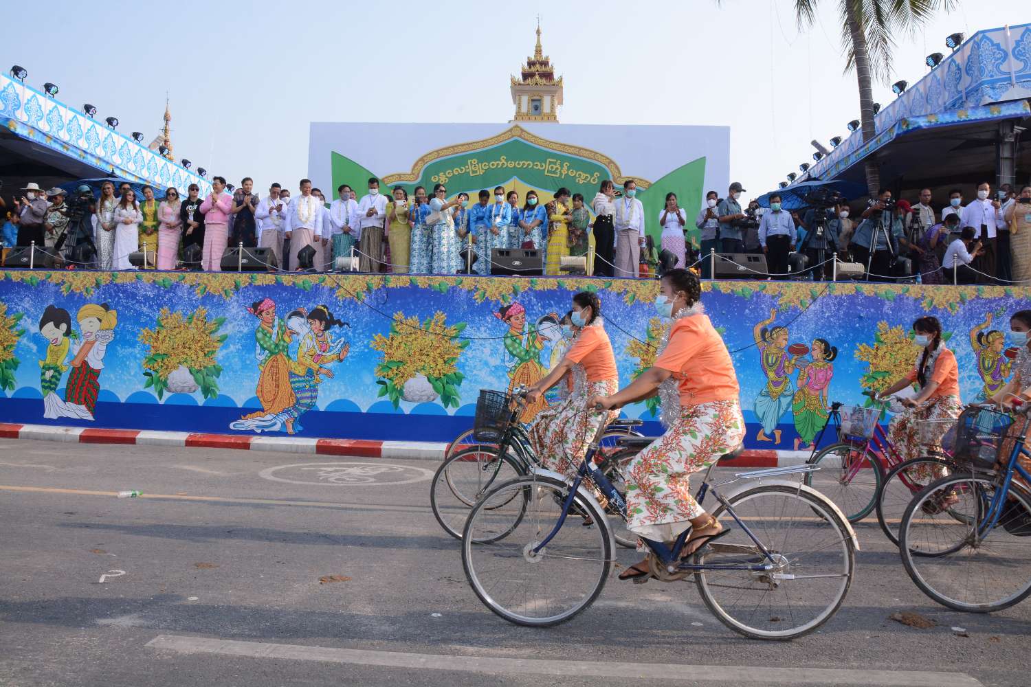ထို့နောက် ပုဂံခေတ်၊ အင်းဝခေတ်၊ ရတနာပုံခေတ်နှင် မျက်မှောက်ခေတ် ခေတ်(၄)ခေတ် ယဉ်ကျေးမှု ဖြင့် ဝတ်စားဆင်ယင်ထုံးဖွဲ့ထားသော လှပျိုဖြူများက အလှပြလှည်းယာဉ်များဖြင့် မန္တလေးမြို့တော် သင်္ကြန်မဏ္ဍပ်ရှေ့ ဖြတ်သန်းဂါဝရပြုခဲ့ပြီးနောက် ယင်းခေတ် ၃ ခေတ် ယဉ်ကျေးမှုဖြင့် ဝတ်စားဆင်ယင် ထုံးဖွဲ့ထားသော လှပျိုဖြူများက အကအလှများဖြင့် ကပြဖျော်ဖြေခဲ့ကြပြီး နိုင်ငံကျော် ရုပ်ရှင်နှင့် ဗီဒီယိုသရုပ်ဆောင်များက တေးဂီတ အဆိုအကများ၊ ယိမ်းအက အလှများဖြင့် ကပြဖျော်ဖြေခဲ့ကြသည်။