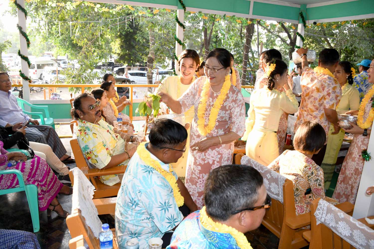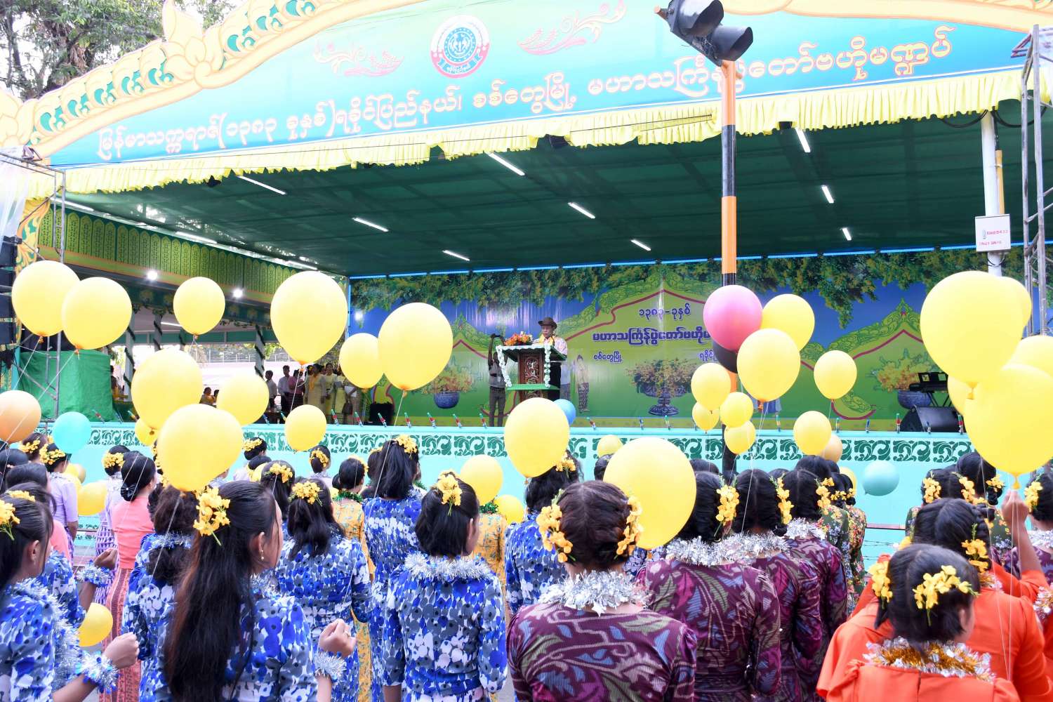 ရခိုင်ပြည်နယ်အစိုးရအဖွဲ့က ကြီးမှူးကျင်းပသော ၁၃၈၃ ခုနှစ်၊ မဟာသင်္ကြန်ပွဲတော် ဗဟိုမဏ္ဍပ်ဖွင့်ပွဲကို ယနေ့ညနေပိုင်းက စစ်တွေမြို့၊ ဦးဥတ္တမပန်းခြံရှေ့ ဗဟိုမဏ္ဍပ်၌ကျင်းပရာ နိုင်ငံတော်စီမံအုပ်ချုပ်ရေး ကောင်စီအဖွဲ့ဝင် ဒေါ်အေးနုစိန်၊ ရခိုင်ပြည်နယ်ဝန်ကြီးချုပ် ဒေါက်တာ အောင်ကျော်မင်း၊ အနောက်ပိုင်း တိုင်းစစ်ဌာနချုပ် တိုင်းမှူးဗိုလ်ချုပ်ထင်လတ်ဦး၊ ပြည်နယ်တရားလွှတ်တော် တရား သူကြီးချုပ် ဒေါ်ဝါဝါထွန်း၊ ပြည်နယ်ဝန်ကြီးများ၊ စစ်တွေတပ်နယ်မှ တပ်မတော်အရာရှိကြီးများ၊ ဌာနဆိုင်ရာတာဝန်ရှိသူများ၊ ယိမ်းအကအဖွဲ့များနှင့် ဒေသခံပြည်သူများတက်ရောက်ကြသည်။