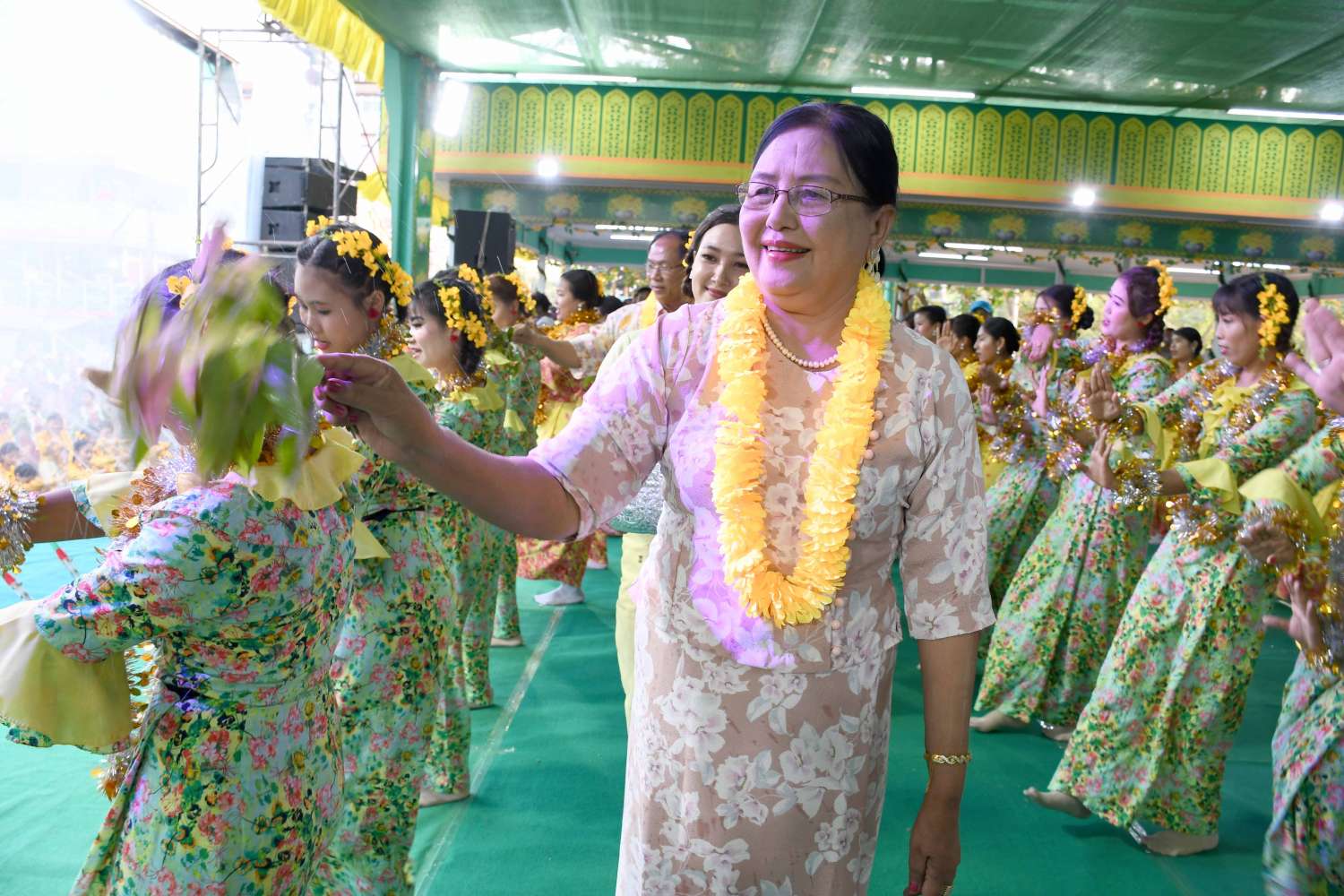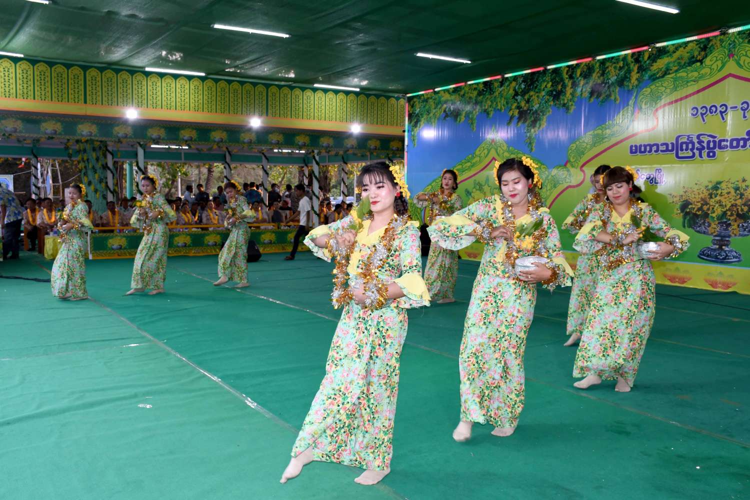 ဆက်လက်၍ ပြည်နယ်ယဉ်ကျေးမှုအဖွဲ့မှ ယိမ်းအကအဖွဲ့များ၊ ဌာနဆိုင်ရာယိမ်းအကအဖွဲ့များနှင့် စစ်တွေတပ်နယ်မှ ယိမ်းအကအဖွဲ့များက တေးသီချင်းများဖြင့် ကပြဖျော်ဖြေကြပြီး မဟာသင်္ကြန်ပွဲတော်ကို ပျော်ရွှင်အေးချမ်းစွာ ဆင်နွဲခဲ့ကြကြောင်းသိရသည်။
