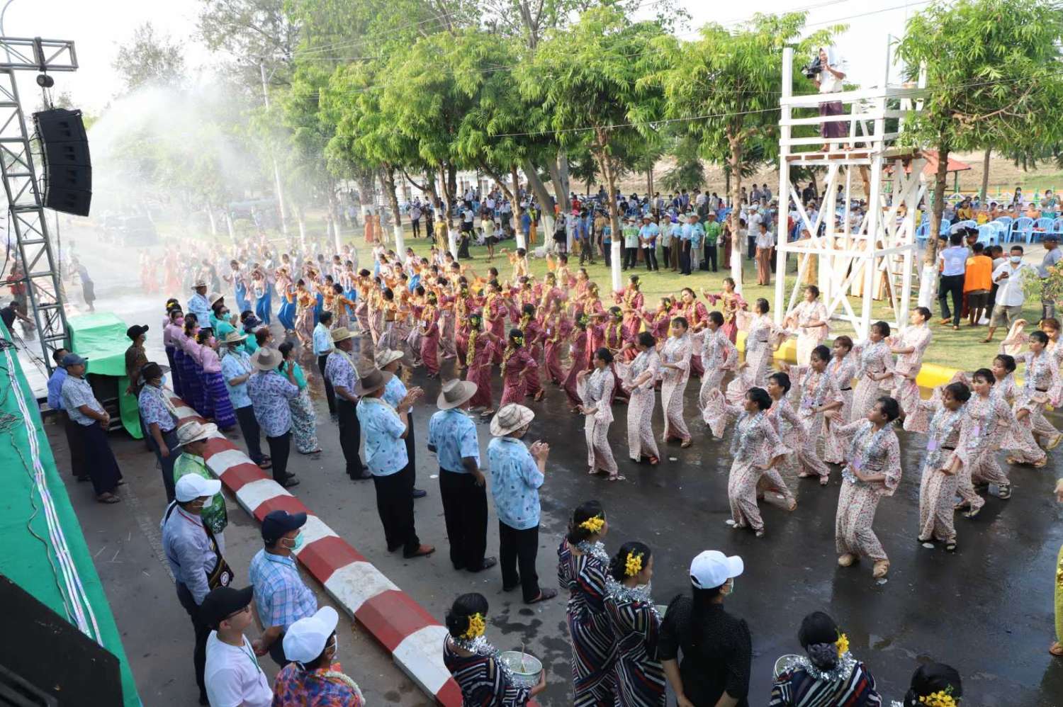 ယင်းနောက် တိုင်းဒေသကြီး ဝန်ကြီးချုပ် ဦးမြတ်ကျော်၊ အနောက်မြောက်တိုင်းစစ်ဌာန ချုပ်တိုင်းမှူး ဗိုလ်မှူးချုပ် သန်းထိုက်၊ တိုင်းဒေသကြီး သယံဇာတရေးရာဝန်ကြီး ဦးတင်သန်းဝင်းတို့က ၁၃၈၃-ခုနှစ်၊ ၂၀၂၂-ခုနှစ်၊ မြန်မာ့ရိုးရာမဟာသင်္ကြန်ပွဲတော် (ဗဟိုမဏ္ဍပ်)အား ဖဲကြိုးဖြတ် ဖွင့်လှစ်ပေးကြပြီး ယိမ်းအကလှပျိုဖြူများက “ မြူမှောင်ဝေကင်း ” တေးသီချင်းဖြင့် ကပြဖျော်ဖြေကြသည်။