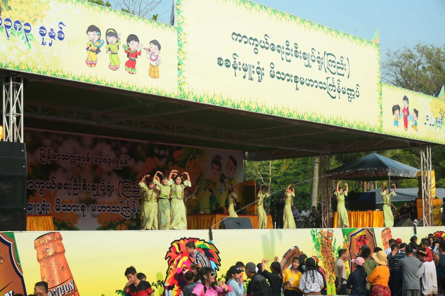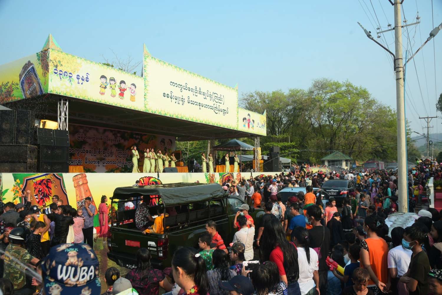 ယနေ့မနက်ပိုင်းတွင် နေပြည်တော်ဇေယျာသီရိရှိ ကာကွယ်ရေးဦးစီးချုပ်ရုံး(ကြည်း၊ ရေ၊လေ) မိသားစုရေကစားမဏ္ဍပ်၌ နိုင်ငံကျော်အနုပညာရှင်များနှင့် တေးသံရှင်များ၊ မိသားစု သင်္ကြန်ယိမ်းအကအဖွဲ့များက သီဆိုကပြဖျော်ဖြေကြရာ နိုင်ငံတော်စီမံအုပ်ချုပ်ရေးကောင်စီဒုတိယဥက္ကဋ္ဌ ဒုတိယဝန်ကြီးချုပ် ဒုတိယတပ်မတော်ကာကွယ်ရေးဦးစီးချုပ် ကာကွယ်ရေးဦးစီးချုပ်(ကြည်း) ဒုတိယဗိုလ်ချုပ်မှူးကြီး စိုးဝင်းသည် နိုင်ငံတော်စီမံအုပ်ချုပ်ရေးကောင်စီအဖွဲ့ဝင်များ၊ ပြည်ထောင်စုဝန်ကြီးများ၊ ဒုတိယ ဝန်ကြီးများ၊ ကာကွယ်ရေးဦးစီးချုပ်ရုံးမှ တပ်မတော်အရာရှိကြီးများနှင့် ဇနီးများနှင့်အတူ တက်ရောက်ကြည့်ရှုအားပေးကြပြီး သီဆိုကပြဖျော်ဖြေကြသည့် အနုပညာရှင်များနှင့် ယိမ်းအဖွဲ့များအား ဂုဏ်ပြုဆုငွေများ ချီးမြှင့်ပေးအပ်သည်။