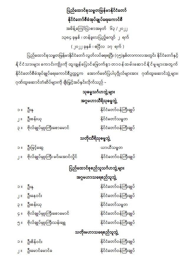 ပြည်ထောင်စုသမ္မတမြန်မာနိုင်ငံတော်အစိုးရ နိုင်ငံတော်စီမံအုပ်ချုပ်ရေးကောင်စီ၏ အမိန့်ကြော်ငြာစာအမှတ် ၆၃/၂၀၂၂ ထုတ်ပြန်သည် (ဧပြီလ ၁၇) 04/17/2022
