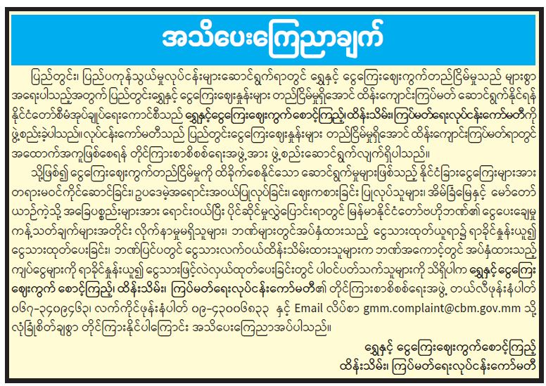 ဦးစီးဌာနနှင့် လုပ်ငန်းများ၏ ကြေညာချက်များ