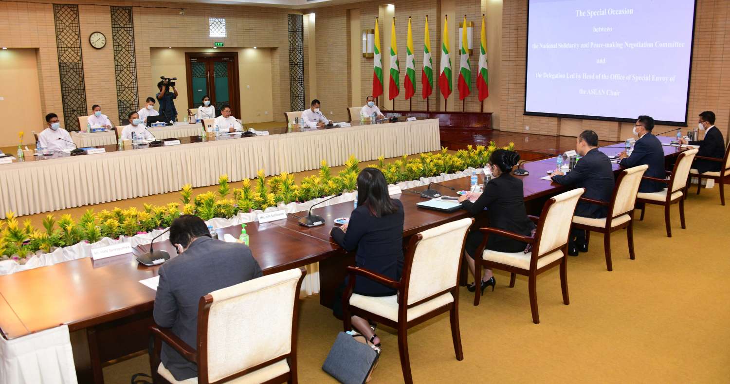 ယင်းနောက် ကမ္ဘောဒီးယားနိုင်ငံ ဒုတိယဝန်ကြီးနှင့် အာဆီယံဥက္ကဋ္ဌ၏ အထူးကိုယ်စားလှယ်၏ ရုံးအဖွဲ့အကြီးအကဲဖြစ်သူ H.E.Dr.KUNG Phoak က မြန်မာနိုင်ငံအတွက် လူသားချင်းစာနာ ထောက်ထားမှုအကူအညီပေးရေးဆိုင်ရာကိစ္စ၊ မြန်မာနိုင်ငံ၏ လက်ရှိ ငြိမ်းချမ်းရေးလုပ်ငန်း စဉ်အပေါ် ပံ့ပိုးဆောင်ရွက်ပေးနိုင်ရေးကိစ္စ၊ မြန်မာနိုင်ငံ၏ လက်ရှိ အခြေအနေကို ဖြေရှင်းနိုင်ရန် စေ့စပ်ညှိနှိုင်း ရေးဆွေးနွေးပွဲများ ကျင်းပနိုင်ရေးကိစ္စရပ်များနှင့် စပ်လျဉ်း၍ ဆွေးနွေး ပြောကြားသည်။