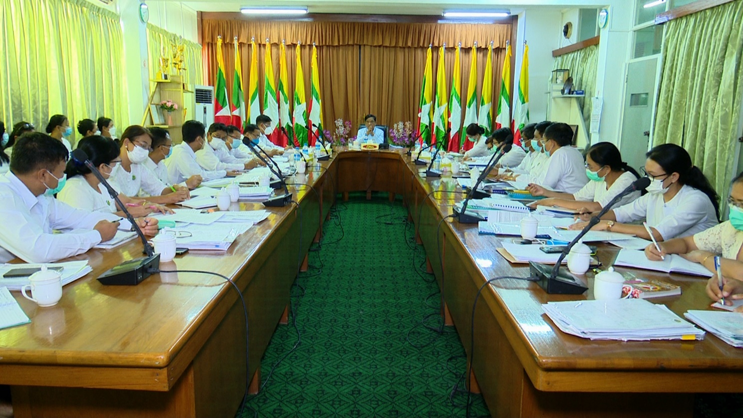 မွန်းလွဲပိုင်းတွင် ပြည်ထောင်စုဝန်ကြီးသည် အင်းစိန်မြို့နယ်ရှိ ဆေးဝါးစက်ရုံ (အင်းစိန်) သို့ ရောက်ရှိရာ စက်ရုံမှူးက ၂၀၂၂-၂၀၂၃ ဘဏ္ဍာရေးနှစ်တွင် လုပ်ငန်းအကောင်အထည်ဖော် ဆောင်ရွက်နိုင်ရေး စီမံဆောင်ရွက်ထားရှိမှုအခြေအနေများကို ရှင်းလင်းတင်ပြသည်။