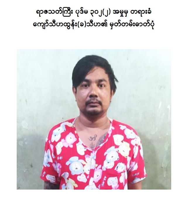 ရန်ကုန်တိုင်းဒေသကြီး၊ လှိုင်သာယာ(အနောက်ပိုင်း)မြို့နယ်နေ ကျော်စိုးထက်(ခ) ကျော်စိုး(ခ) ကျောင်းဆရာ(ဘ)ဦးအောင်အောင်နှင့် ရဲရင့်ထူး(ခ) ရဲကြီး(ဘ) ဦးစန်းထွန်း တို့သည် ၂၀၂၁ ခုနှစ်၊ ဖေဖော်ဝါရီလအတွင်း ဆန္ဒပြမှုများတွင် ပါဝင်ခြင်း၊ တိုင်းရင်းသား လက်နက်ကိုင်အဖွဲ့ နယ်မြေအတွင်း၌ သင်တန်းတက်ရောက်ခဲ့ခြင်း၊ လှိုင်သာယာ(အနောက်ပိုင်း)မြို့နယ်၊ အမှတ်(၉) ရပ်ကွက်အနီးရှိ ရဲကင်းစခန်း အပါအဝင် အများပြည်သူများ သွားလာလျက်ရှိသည့် နေရာများအား လက်လုပ်မိုင်း များဖြင့် ဖောက်ခွဲတိုက်ခိုက်ခဲ့ခြင်းတို့ကြောင့် လည်းကောင်း၊ အဆိုပါရပ်ကွက်နေ ဌေးသန္တာ(ခ) ဌေးစန္ဒာ(ခ)ဌေးဌေး(ဘ)ဦးဘို သည် ၂၀၂၁ ခုနှစ်၊ ဖေဖော်ဝါရီလအတွင်း ဆန္ဒပြမှုများတွင်ပါဝင်ခြင်း၊ လှိုင်သာယာ (အနောက်ပိုင်း)မြို့နယ်အတွင်း အကြမ်းဖက်လုပ်ငန်းများဆောင်ရွက်ရန် ကျော်စိုးထက် (ခ)ကျောင်းဆရာမှ ပေးအပ်သည့် လက်လုပ်မိုင်းများအား လက်ခံသိမ်းဆည်းပေးခြင်းနှင့် အကြမ်းဖက် သင်တန်းတက် ရောက်ရန် ငွေကြေးထောက်ပံ့မှုများကို လုပ်ဆောင်ခဲ့ခြင်းတို့ကြောင့် လည်းကောင်း စစ်အုပ်ချုပ်ရေး(Martial Law) စစ်ခုံရုံးဖွဲ့၍ စစ်ဆေးမှုများဆောင်ရွက်ခဲ့ရာ အကြမ်းဖက်မှုတိုက်ဖျက်ရေး ဥပဒေပုဒ်မ ၅၀(ဈ)နှင့် ၅၀(ည)တို့အရ ၂၀၂၂ ခုနှစ်၊ ဧပြီ ၂၂ ရက်တွင် ၎င်းတို့အား “ထောင်ဒဏ် တစ်သက်” ပြစ်ဒဏ်ကို အသီးသီးအမိန့် ချမှတ်လိုက်ကြောင်း သိရှိရသည်။