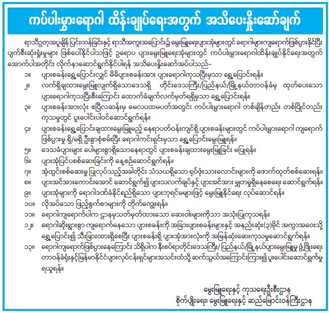 ကပ်ပါးမွှားရောဂါ ထိန်းချုပ်ရေးအတွက် အသိပေးနှိုးဆော်ချက်