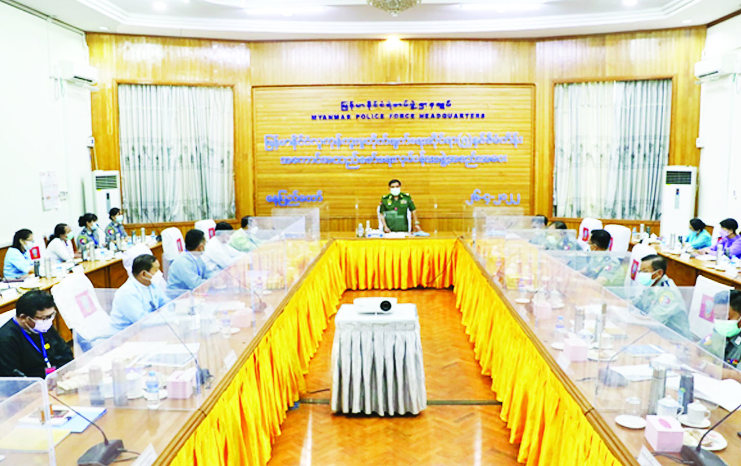 အစည်းအဝေးတွင် ဒုတိယဝန်ကြီး၊ မြန်မာနိုင်ငံရဲတပ်ဖွဲ့ ရဲချုပ် ဒုတိယဗိုလ်ချုပ်ကြီး သန်းလှိုင်က မြန်မာနိုင်ငံတွင် လူကုန်ကူးမှုတိုက်ဖျက်ရေးကို အမျိုးသားရေးတာဝန်တစ်ရပ်အဖြစ် ၁၉၉၇ ခုနှစ်မှ စတင်သတ်မှတ်ခဲ့ပြီး လူကုန်ကူးမှုတိုက်ဖျက်ရေးဆိုင်ရာ ငါးနှစ်စီမံကိန်းများ ရေးဆွဲ အကောင်အထည်ဖော်ဆောင်ရွက်ခဲ့ပါကြောင်း၊ ယခုစတုတ္ထ ငါးနှစ်စီမံကိန်း ၂၀၂၂-၂၀၂၆ ကာလ ဖြစ်ပါကြောင်း၊ ယခင်ငါးနှစ်စီမံကိန်းများအပေါ် ပြန်လည်သုံးသပ်ကာ မဟာဗျူဟာသုံးရပ်၊ နည်းဗျူဟာလေးရပ်ချမှတ်၍ လုပ်ငန်းကဏ္ဍလေးရပ်အောက်၌ လုပ်ငန်းစဉ်(၈၄)ရပ် ထည့်သွင်း ရေးဆွဲအတည်ပြုခဲ့ပါကြောင်း၊ စတုတ္ထငါးနှစ်စီမံကိန်း၏ ပထမနှစ်ဖြစ်သည့် ၂၀၂၂ ခုနှစ်အတွက် လုပ်ငန်းစီမံချက် ရေးဆွဲခဲ့ပြီးဖြစ်ပါကြောင်း၊ လူကုန်ကူးမှုတိုက်ဖျက်ရေးလုပ်ငန်းများ အကောင်အထည်ဖော်ရာတွင် အသိပညာပေးခြင်းနှင့် ပြစ်မှုကျူးလွန်သူများကို ဖော်ထုတ်အရေး ယူခြင်းများ ဆောင်ရွက်ရာ၌ ပြည်သူလူထု ပူးပေါင်းပါဝင်သတင်းပေးမှုသည် အရေးကြီးသည့် အခန်းကဏ္ဍဖြစ်ကြောင်း၊ ပြည်သူလူထုမှ အမျိုးသားရေးအသိစိတ်ဓာတ်ဖြင့် ပူးပေါင်းပါဝင်စေရေး ထိတွေ့ဆက်ဆံရသည့် ဌာနဆိုင်ရာများအနေဖြင့် စည်းရုံးဆောင်ရွက်ကြရန် မှာကြား သည်။