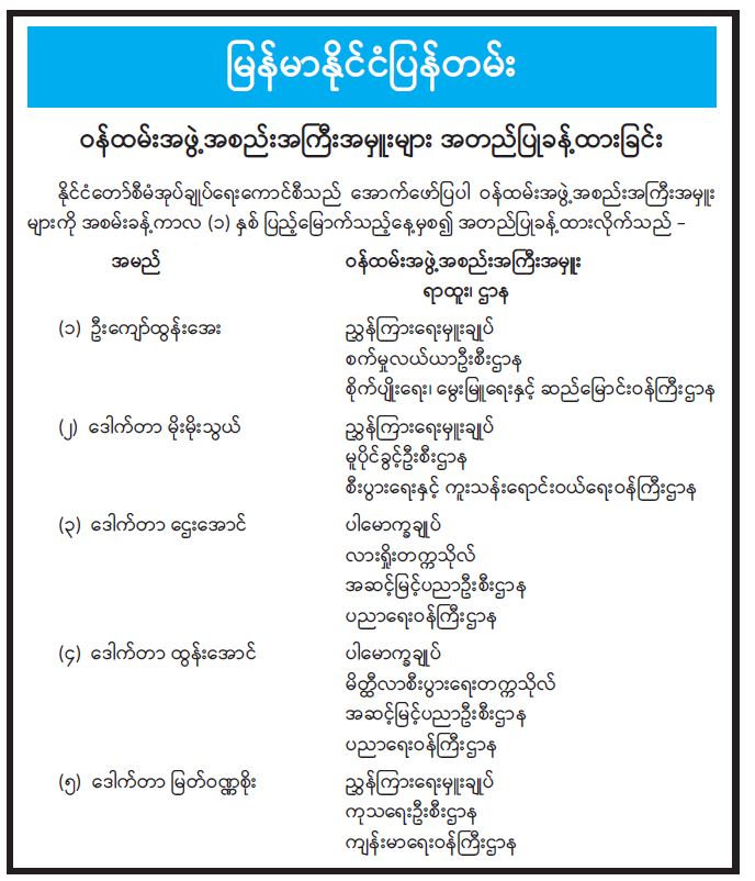 ဝန်ကြီးဌာန ကြေညာချက်များ
