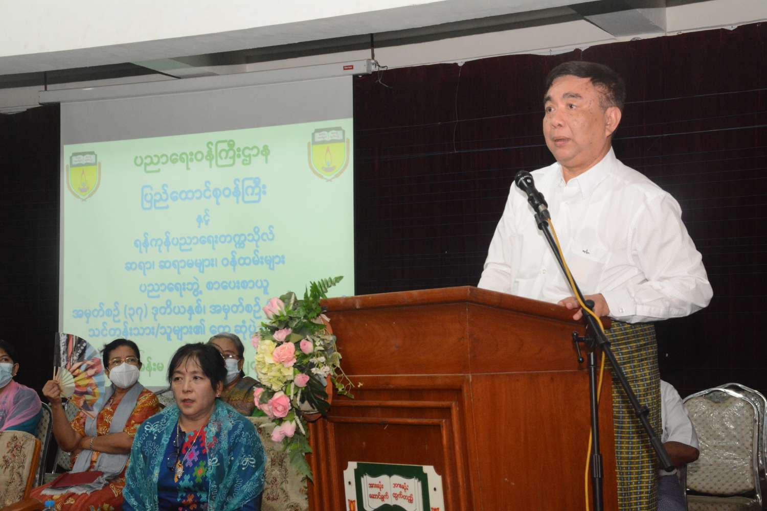 ရှေးဦးစွာ ပြည်ထောင်စုဝန်ကြီး ဒေါက်တာညွန့်ဖေက ဆရာ ဆရာမတို့၏ ဘဝရှေ့ရေးတက်လမ်းအတွက် ကြိုးစားကြစေလိုကြောင်း၊ ပညာရေးဘွဲ့ စာပေးစာယူသင်တန်းများကို ပညာရေးဘွဲ့မရရှိသေးသည့် ဆရာဆရာမများအတွက် ရန်ကုန်ပညာရေးတက္ကသိုလ်နှင့် စစ်ကိုင်း ပညာရေးတက္ကသိုလ်များတွင်သာမက ပညာရေးဒီဂရီကောလိပ် (၂၅)ခုတွင် တိုးချဲ့ဖွင့်လှစ်ပေးခဲ့ပါကြောင်း၊ ပညာရေးဝန်ကြီးဌာနတွင် B.Ed ဘွဲ့မရရှိသေးသည့် ဆရာ ဆရာမ အများအပြားရှိပါကြောင်း၊ သို့ဖြစ်၍ ပညာရေးဘွဲ့မရရှိသေးသည့် ဆရာ ဆရာမများအနေဖြင့် ပညာရေးဘွဲ့ရရှိရန် နှစ်ပေါင်းများစွာ စောင့်ဆိုင်းရမည်ဖြစ်သည့်အတွက် ယခုကဲ့သို့ ဆောင်ရွက်ရခြင်းဖြစ်ကြောင်း၊ ယင်းသို့ ဖွင့်လှစ် အကောင်အထည်ဖော်ဆောင်ရွက်သည့်အတွက် နှစ်အနည်းငယ်အတွင်း ပညာရေးဘွဲ့ကို သင်တန်းသား သင်တန်းသူအားလုံး ရရှိနိုင်မည်ဖြစ်ကြောင်း။