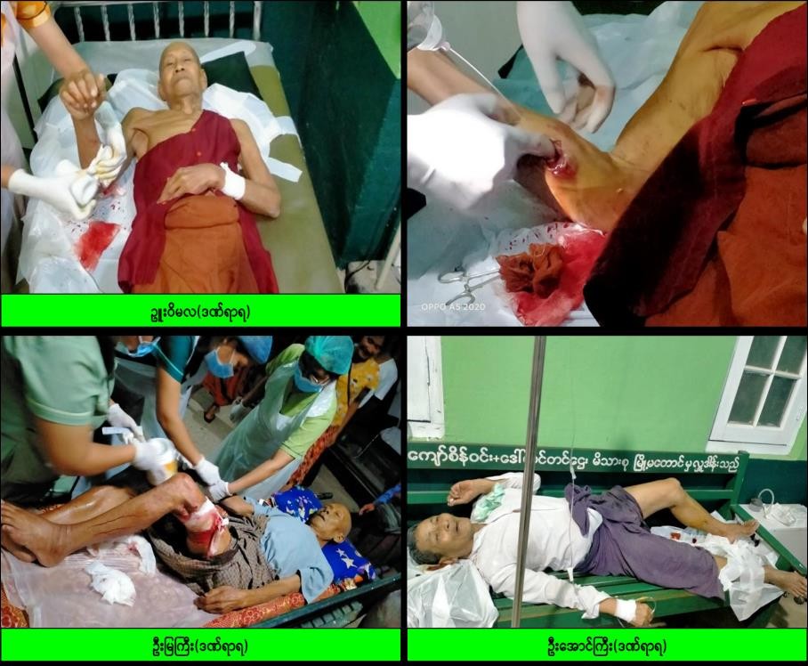 ထိုသို့ ပြုလုပ်လျက်ရှိရာတွင် ဧပြီလ ၂၈ ရက်နေ့ ည ၆ နာရီ ၄၅ မိနစ်အချိန်တွင် ကချင် ပြည်နယ်၊ မိုးညှင်းမြို့နယ်၊ နန်းမားကျေးရွာအုပ်စု၊ နန့်စလော်ကျေးရွာရှိ “ဒက္ခိဏဝန်မန်” (တောင်ကျောင်း)ဘုန်းတော်ကြီးကျောင်းတိုက်အား အကြမ်းဖက်အဖွဲ့များက ဒရုန်းယာဉ်ဖြင့် ဗုံး ၁ လုံးအား ချိတ်ဆွဲ၍ ပစ်ချဖောက်ခွဲခဲ့ပြီး ၅ မိနစ်ခန့်အကြာတွင် ထပ်မံ၍ ဗုံး ၁ လုံးပစ်ချဖောက်ခွဲ တိုက်ခိုက်ခဲ့ရာ အဆိုပါ ဗုံး ၂ လုံးမှာ ဘုန်းကြီးကျောင်းဝင်းအတွင်း၌ အလှူပွဲအတွက် ချက်ပြုတ်ပြင်ဆင်နေသည့်နေရာအနီးသို့ ကျရောက်ပေါက်ကွဲခဲ့ပြီး ပေါက်ကွဲမှုကြောင့် ကျောင်းတိုက်နေဆရာတော် ဥူးဝိမလ သက်တော်(၇၈)နှစ်၊ ဝါတော်(၂၅)ဝါနှင့် အဆိုပါကျေးရွာနေ ဦးသန်းထွန်း (၅၂)နှစ်၊ ဦးအောင်ကြီး (၆၈)နှစ်၊ ဦးမြကြီး(၈၃)နှစ်၊ မောင်ဓာတ်စံ(၅)နှစ်တို့တွင် ဗုံးစထိမှန်ဒဏ်ရာများ အသီးသီးရရှိခဲ့ကြောင်း သိရသည်။