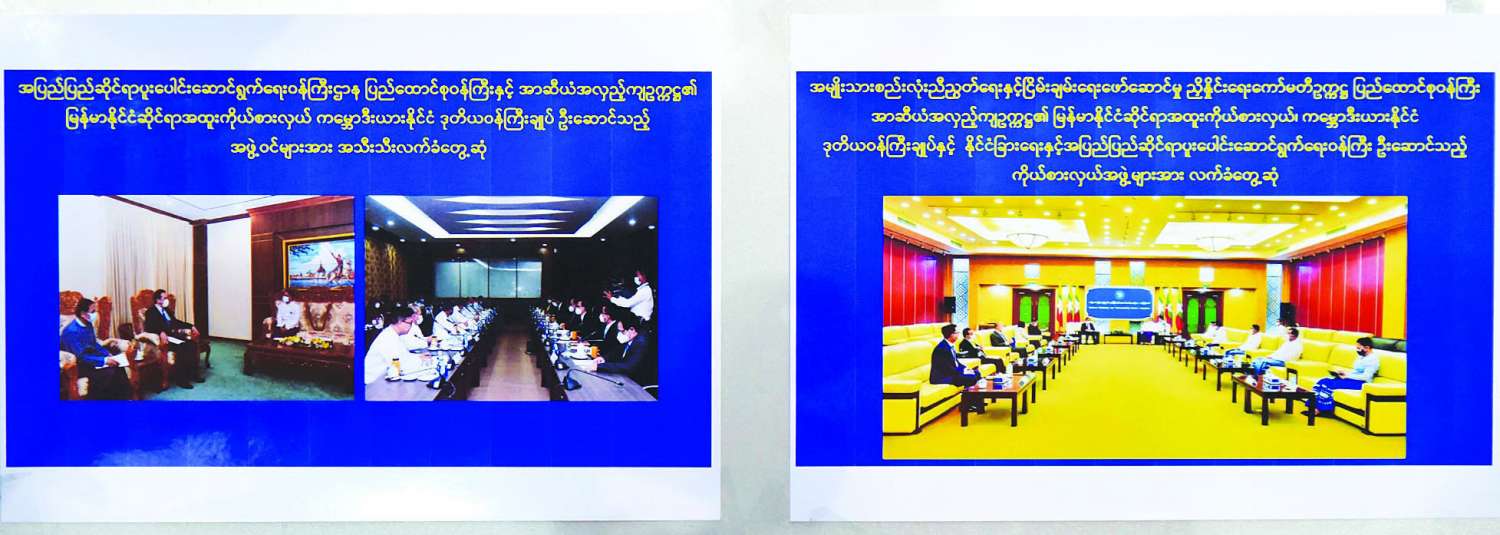ဧပြီ ၂၀ ရက်တွင် အမျိုးသားစည်းလုံးညီညွတ်ရေးနှင့် ငြိမ်းချမ်း ရေးဖော်ဆောင်မှု ဗဟိုဌာနဧည့်ခန်းမ၌ ညှိနှိုင်းရေးကော်မတီ အတွင်းရေးမှူးနှင့် အာဆီယံအလှည့်ကျဥက္ကဋ္ဌ၏ အထူးကိုယ်စားလှယ် အဖွဲ့တို့ တွေ့ဆုံဆွေးနွေးခဲ့ကြောင်း၊ တွေ့ဆုံရာ၌ ညှိနှိုင်းရေးကော်မတီ အတွင်းရေးမှူးက တိုင်းရင်းသားလက်နက်ကိုင်အဖွဲ့အစည်းများနှင့် တွေ့ဆုံဆွေးနွေးမှုများ ပြုလုပ်နိုင်မည့်အခြေအနေနှင့် လူသားချင်း စာနာထောက်ထားမှု အကူအညီပေးရေးဆိုင်ရာ ကိစ္စရပ်များကို ရှင်းလင်းပြောကြားခဲ့ကြောင်း၊ မြန်မာနိုင်ငံ၏ လက်ရှိငြိမ်းချမ်းရေး လုပ်ငန်းစဉ်အပေါ် ပံ့ပိုးဆောင်ရွက် ပေးနိုင်ရေးကိစ္စနှင့် လက်ရှိ အခြေအနေများအပေါ် ဖြေရှင်းနိုင်ရန် စေ့စပ်ညှိနှိုင်းရေးဆွေးနွေးပွဲများ ကျင်းပရေးကိစ္စရပ်များနှင့် စပ်လျဉ်း၍ ဆွေးနွေးခဲ့ကြောင်း၊ ညှိနှိုင်းရေးအဖွဲ့ဖွဲ့စည်းမှုများ၊ တိုင်းရင်းသားလက်နက်ကိုင်အဖွဲ့ အစည်းများနှင့် အရပ်ဘက်လူမှု အဖွဲ့အစည်းများ၊ နိုင်ငံတကာအသိုင်းအဝိုင်းနှင့် အကူအညီပေးနေသည့် အလှူရှင်အဖွဲ့အစည်းများ၊ နယ်ပယ်အသီးသီးမှ တတ်သိပညာရှင်များနှင့် ကျွမ်းကျင်သူ များအား ငြိမ်းချမ်းရေးဖော်ဆောင်မှု လုပ်ငန်းအဆင့်ဆင့်တွင် အပြုသဘောဆောင်၍ ပူးပေါင်းဆောင်ရွက်ရန်၊ NCA လက်မှတ်ရေးထိုးထားသည့် တိုင်းရင်းသားလက်နက်ကိုင်အဖွဲ့အစည်းများနှင့် ငြိမ်းချမ်းရေး ပိုမို ခိုင်မာလာစေရန်၊ NCA လက်မှတ်ရေးထိုးခြင်းမရှိသေးသည့် တိုင်းရင်းသား လက်နက်ကိုင် အဖွဲ့အစည်းများနှင့်လည်း NCA တွင် ပါဝင်လက်မှတ်ရေးထိုးနိုင်ရေး ဆောင်ရွက်သွားရန်ဟု ပါရှိကြောင်း။
