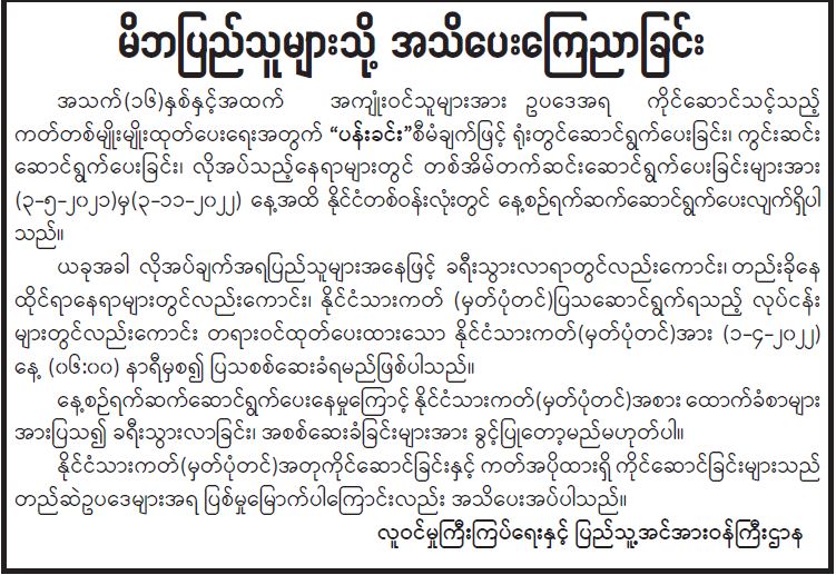 မိဘပြည်သူများသို့ အသိပေးကြေညာခြင်း