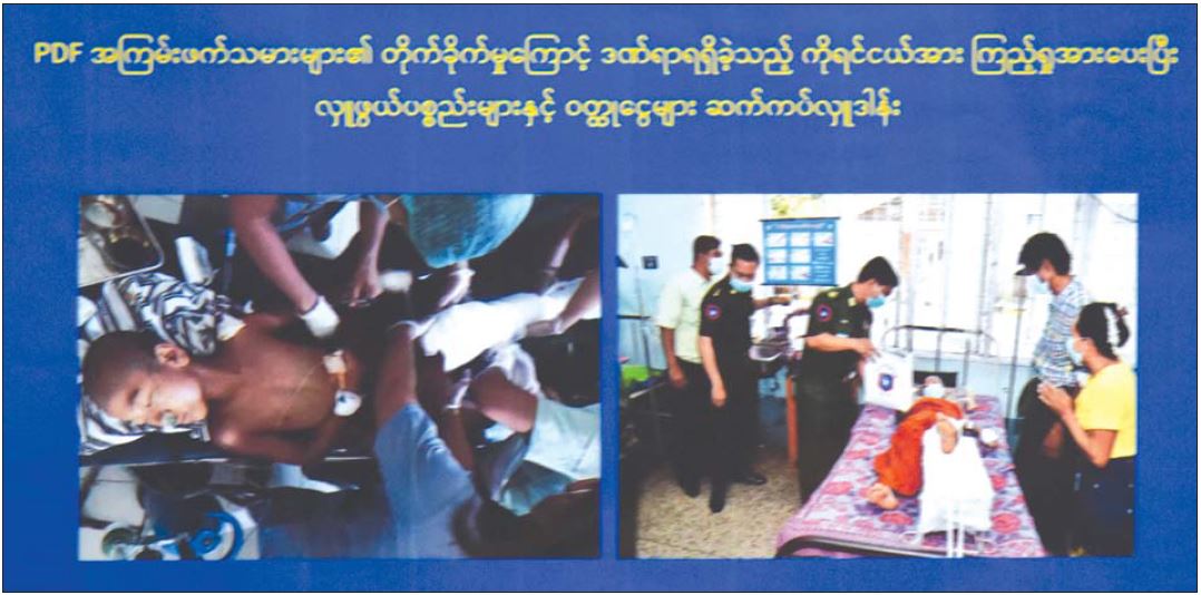 လက်ရှိအချိန်တွင် မိမိတို့ ဂရုစိုက်ရမည်မှာ မြန်မာနိုင်ငံအတွင်း ယင်းတို့အဖွဲ့အစည်းများက သံဃာတော်များအား သတ်ဖြတ်ခြင်း၊ နေအိမ်များ မီးရှို့ခြင်း၊ ရွာများမီးရှို့ခြင်းများကို အကြမ်းဖက် PDF များက လုပ်ဆောင်နေသည်ကို အားလုံးအသိပင်ဖြစ်ကြောင်း၊ NUG အဖွဲ့အစည်းမှ ဝန်ကြီးအချို့ကိုယ်တိုင် လှုံ့ဆော်နေကြောင်း၊ စာသင် ကျောင်းများကို ဗုံးခွဲရန်နှင့် အကြမ်းဖက်သတ်ဖြတ်ခြင်းလုပ်ငန်းများ လုပ်ဆောင်ရန် လှုံ့ဆော်မှုများနှင့်ပတ်သက်ပြီး တုံ့ပြန်မှုများကို ၎င်းတို့ ခံစားနေရခြင်းဖြစ်ကြောင်း၊ တုံ့ပြန်မှုများ ခံစားရသည့်အချိန်တိုင်းတွင် အထက်မှာပြောခဲ့သည့်အတိုင်း တပ်မတော်က အဖွဲ့ဖွဲ့စည်းပြီး သတ်နေသယောင်ယောင်ဖြင့် ပြောကြားနေကြောင်း၊ မိမိပြောလိုသည်မှာ နီနီ မနီနီ သဘောမတူလျှင် အကျိုးစီးပွား ထိခိုက်လာရင် တစ်နိုင်ငံလုံးပတ်ရမ်းပြီး သတ်နေသည်မှာ ၎င်းတို့အဖွဲ့အစည်း တစ်ခု သာရှိကြောင်း၊ ထို့ကြောင့် မိမိတို့အနေဖြင့် နိုင်ငံတော်နှင့် ပြည်သူလူထု အကျိုးကို ကာကွယ်စောင့်ရှောက်နေသည့် မီဒီယာများအနေဖြင့် အချို့သတင်းများသည် ဂရုစိုက်ရန်လိုကြောင်း၊ ကိုယ့်အကျိုးကို လိုလားနေသယောင်နှင့် အတွင်းထဲကိုဝင်ပြီး လှိုက်စားသည့် အပြုအမူများကို ဂရုစိုက်ရန်လိုအပ်သည်ဟု တိုက်တွန်းလိုကြောင်း။