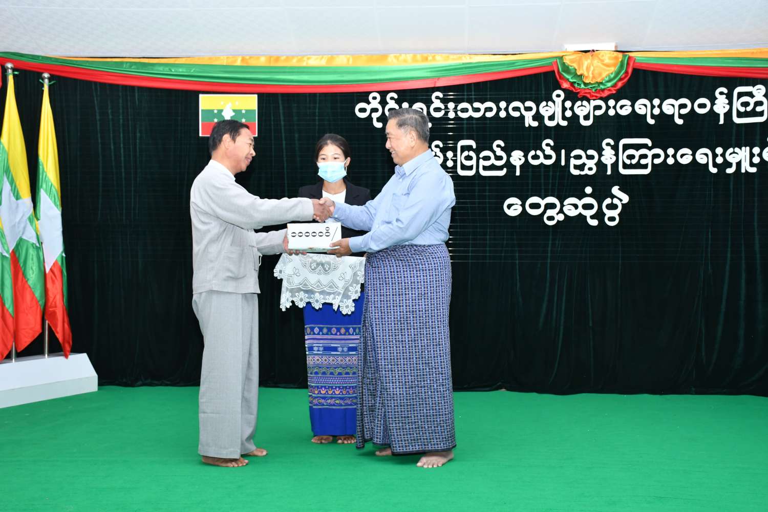 ထို့နောက် ပြည်ထောင်စုဝန်ကြီး၊ ဒုတိယဝန်ကြီးနှင့် ပြည်နယ်တိုင်းရင်းသားရေးရာဝန်ကြီးတို့က တိုင်းရင်းသားစာပေနှင့် ယဉ်ကျေးမှုလုပ်ငန်းများ ထိန်းသိမ်း မြှင့်တင်ဆောင်ရွက်နိုင်ရန်အတွက် ထောက်ပံ့ငွေများ ပေးအပ်သည်။