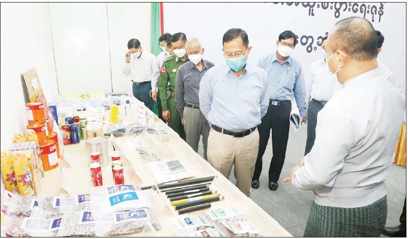 ဆက်လက်၍နိုင်ငံတော်စီမံအုပ်ချုပ်ရေး ကောင်စီဒုတိယဥက္ကဋ္ဌ ဒုတိယတပ်မတော် ကာကွယ် ရေးဦးစီးချုပ် ကာကွယ်ရေးဦးစီးချုပ်(ကြည်း) ဒုတိယ ဗိုလ်ချုပ်မှူးကြီးစိုးဝင်းနှင့် အဖွဲ့ဝင်များသည် ခင်းကျင်းပြသထားသည့် သီလဝါအထူးစီးပွားရေးဇုန်မှ ထုတ်လုပ်သော ကုန်ပစ္စည်းများအား လှည့်လည် ကြည့်ရှုကြပြီး သီလဝါအထူးစီးပွားရေးဇုန် ဧည့်ခန်းမဆောင်၌ တာဝန်ရှိသူများအား လိုအပ်သည်များ မှာကြားသည်။