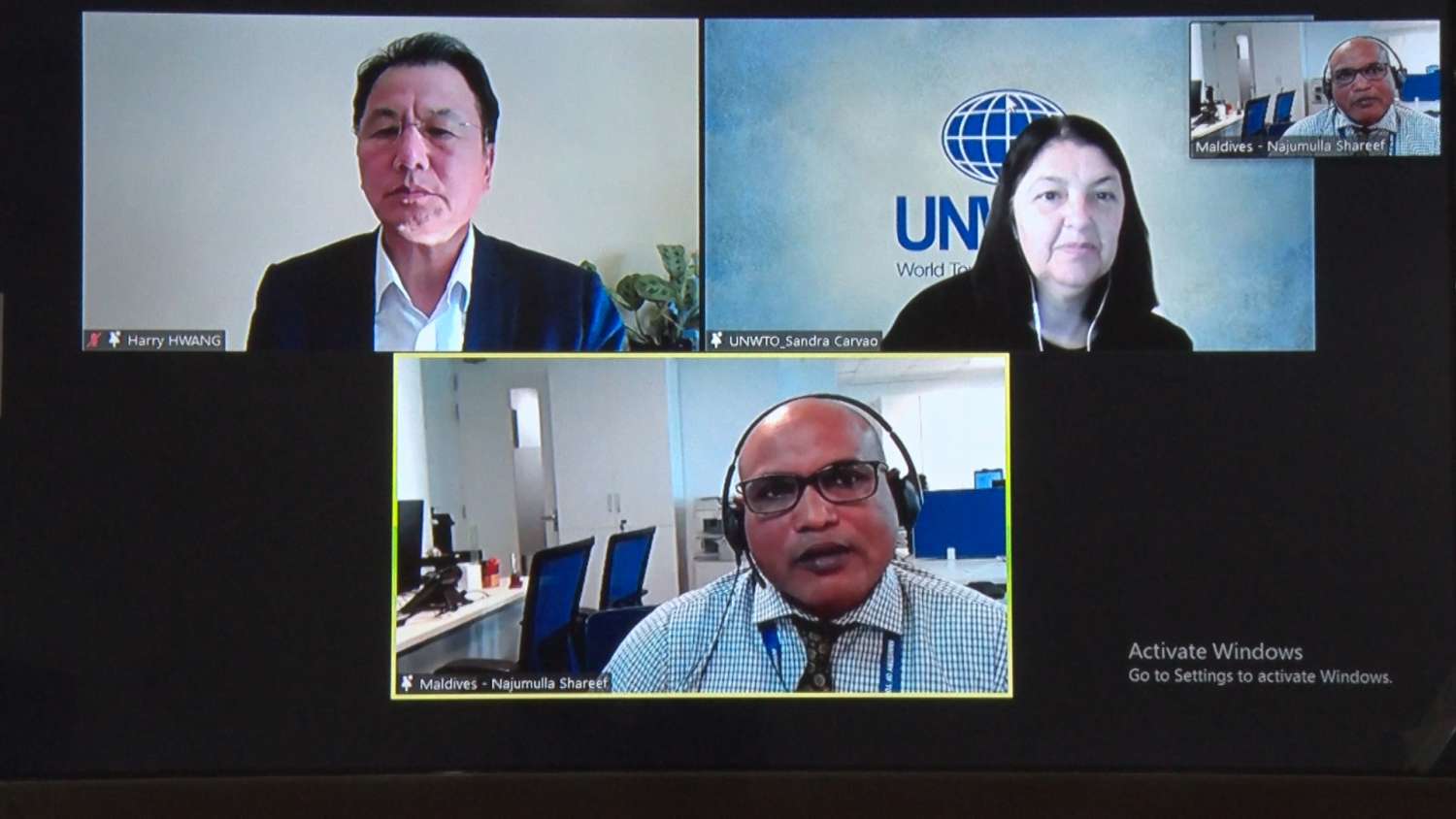 ဆက်လက်၍ အစီအစဉ်အရ အာရှနှင့်ပစိဖိတ်ဒေသတွင်းဌာန၏ ညွှန်ကြားရေးမှူး Mr. Harry Hwang က အကောင်းဆုံး ခရီးသွားလုပ်ငန်းကျေးရွာအစီအစဉ်ကို ၂၀၂၁ ခုနှစ်မှစတင်၍ ရှေ့ပြေးစီမံကိန်းအဖြစ်ဆောင်ရွက်ခဲ့ရာ ကမ္ဘာ့ခရီးသွားလုပ်ငန်းအဖွဲ့ချုပ် အဖွဲ့ဝင်နိုင်ငံပေါင်း (၁၀) နိုင်ငံမှ ရွာပေါင်း (၄၄) ရွာကို အကောင်းဆုံး ခရီးသွားလုပ်ငန်းကျေးရွာများအဖြစ် သတ်မှတ်ပေးခဲ့ပြီး ဖြစ်ပါကြောင်း၊ ယနေ့ကျင်းပသော အွန်လိုင်းအစည်းအဝေးမှာ ဒုတိယအကြိမ်မြောက် အကောင်အထည်ဖော် ဆောင်ရွက်နိုင်ရေးအတွက် အဖွဲ့ဝင်နိုင်ငံများမှ ကောင်းမွန်သော အခွင့်အရေး များရရှိအောင် ကြိုတင်ပြင်ဆင်နိုင်ရေးအတွက် ဆောင်ရွက်ခြင်းဖြစ်ကြောင်း နှုတ်ခွန်းဆက်ပြောကြားသည်။