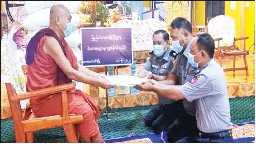 ပြည်ထဲရေးဝန်ကြီးဌာန တပ်ဖွဲ့ဝင်/ဝန်ထမ်း အရာထမ်း၊ အမှုထမ်းမိသားစုများက မြို့နယ်အသီးသီးရှိ ဘုန်းတော်ကြီးကျောင်းများသို့ ဆွမ်းဆန်တော်များ ဆက်ကပ် လှူဒါန်းခြင်းကို ဆောင်ရွက်လျက်ရှိသည်။