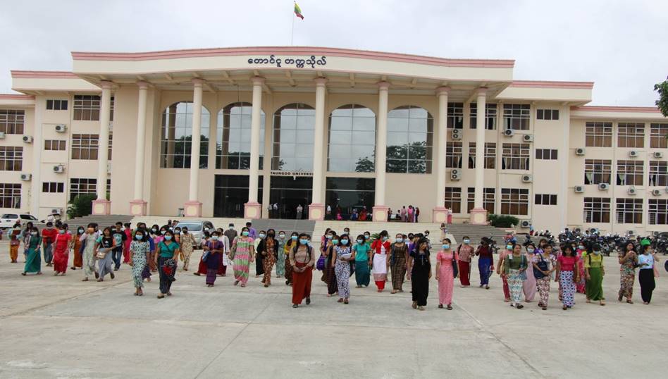 တက္ကသိုလ်ဆရာ၊ ဆရာမများ၊ ကျောင်းသား၊ ကျောင်းသူများ၊ ယာဉ်အန္တရာယ်နှင့် ဘေးအန္တရာယ်ကင်းရှင်းစေရေးအတွက် လုံခြုံရေးတပ်ဖွဲ့များ၊ မြို့နယ်အုပ်ချုပ်ရေးအဖွဲ့၊ ရပ်ရွာအခြေပြု ပြည်သူလူထုလုံခြုံရေးအဖွဲ့များ ပူးပေါင်း၍ အေးချမ်းစွာ ပညာသင်ကြားနိုင်ရေး ဆောင်ရွက်ပေးလျက်ရှိကြောင်း သတင်းရရှိသည်။