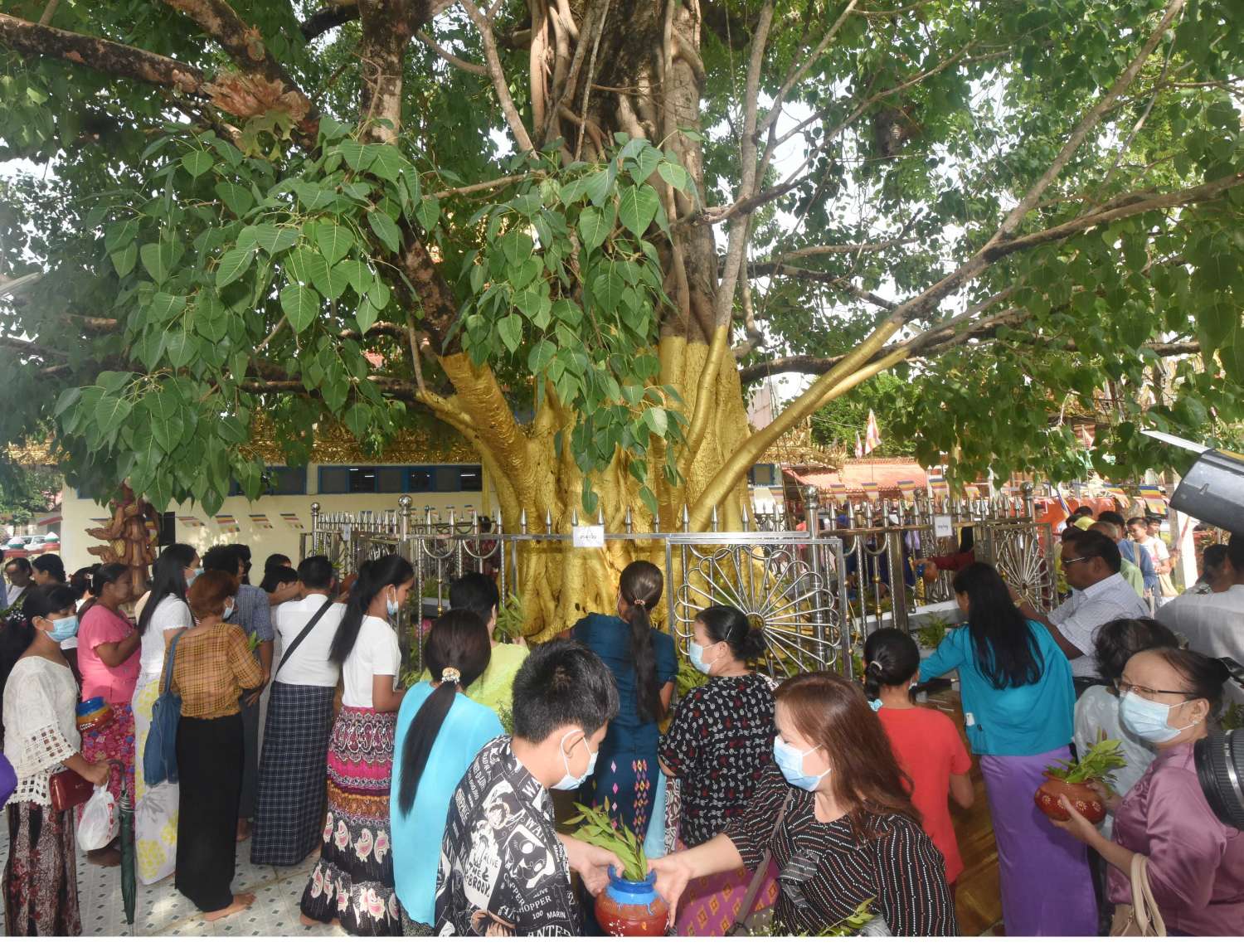 ဖွား၊ ပွင့်၊ ဟော၊ စံ ဗျာဒိတ်ခံသည့် ကဆုန်လပြည့်(ဗုဒ္ဓနေ့)သည် ဗုဒ္ဓဘာသာဝင်များ၏ နေ့ထူးနေ့မြတ်ဖြစ်သည့်အားလျော်စွာ ရန်ကုန်မြို့ရှိ ရွှေတိဂုံစေတီတော်မြတ်ကြီးအပါအဝင် ဘုရားစေတီများ၌ ဥပုသ်သီတင်းဆောက်တည်ကြသူများ၊ ကုသိုလ်ကောင်းမှု ပြုကြသူများ၊ ညောင်ရေသွန်းလောင်းကြသူများဖြင့် စည်ကားလျက်ရှိသည်ကို တွေ့မြင်ရသည်။