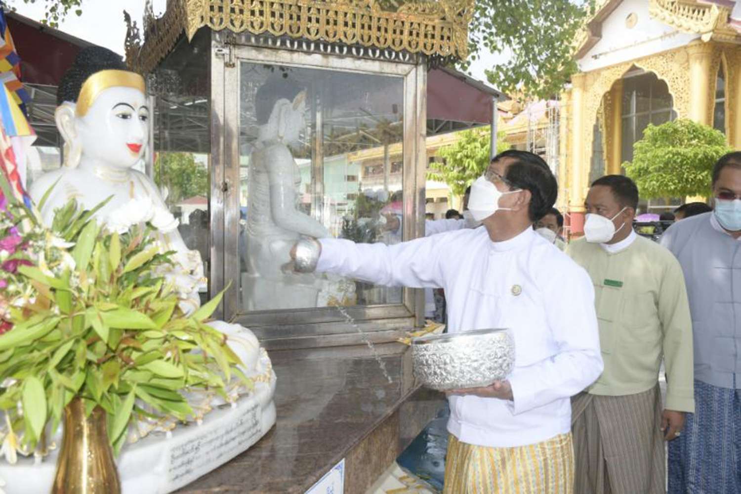 ယင်းနောက် တိုင်းဒေသကြီးဝန်ကြီးချုပ်နှင့် ဂေါပကအဖွဲ့ဝင်များသည် ရွှေတိဂုံစေတီတော် ရှေးဟောင်းဗုဒ္ဓရုပ်ပွားတော်များ တန်ဆောင်း၌ ရွှေတိဂုံစေတီတော်ဘဏ္ဍာတော်ထိန်း ဩဝါဒါစရိယ ဆရာတော်ကြီးများအား အရုဏ်ဆွမ်း ဆက်ကပ်လှူဒါန်းကြသည်၊၊