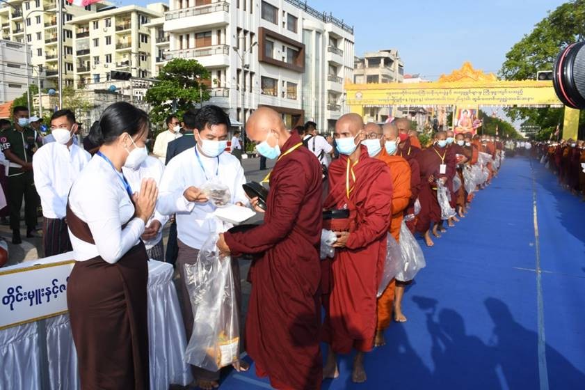ယနေ့ ပြုလုပ်သော အခမ်းအနားတွင် နိုင်ငံတော်စီမံအုပ်ချုပ်ရေးကောင်စီဥက္ကဋ္ဌ၊ နိုင်ငံတော်ဝန်ကြီးချုပ်၊ တပ်မတော်ကာကွယ်ရေးဦးစီးချုပ် ဗိုလ်ချုပ်မှူးကြီးမင်းအောင်လှိုင်၊ ဇနီး ဒေါ်ကြူကြူလှ မိသားစုနှင့် တပ်မတော်သား မိသားစုဝင်များက လှူဖွယ်ပစ္စည်းနှင့် လှူဒါန်းငွေ တန်ဖိုးစုစုပေါင်း ငွေကျပ်(၂၃၂,၁၅၇,၁၈၀)၊ မန္တလေးတိုင်းဒေသကြီး အစိုးရအဖွဲ့နှင့် ဌာနဆိုင်ရာများ၊ အလှူရှင် လုပ်သားပြည်သူများက လှူဖွယ်ပစ္စည်းနှင့် လှူဒါန်းငွေတန်ဖိုး စုစုပေါင်း ငွေကျပ်(၆၁၇,၈၄၅,၃၈၀)၊ စုစုပေါင်းလှူဖွယ်ပစ္စည်းနှင့် လှူဒါန်းငွေတန်ဖိုး ငွေကျပ် (၈၅၀,၀၀၂,၅၆၀) တို့ကိုလှူဒါန်းခဲ့ကြကြောင်းနှင့် တိုင်းဒေသကြီးအတွင်းရှိ မြို့နယ်(၂၁) မြို့နယ်၌ သံဃာတော်(၁၀၈)ပါးစီဖြင့် အန္တရာယ်ကင်းပရိတ် တရားတော်များရွတ်ဖတ်ခြင်းနှင့် ဆွမ်း၊ လှူဖွယ်ပစ္စည်း၊ အလှူငွေများ ဆက်ကပ်လောင်းလှူခဲ့ကြကြောင်း သိရသည်။