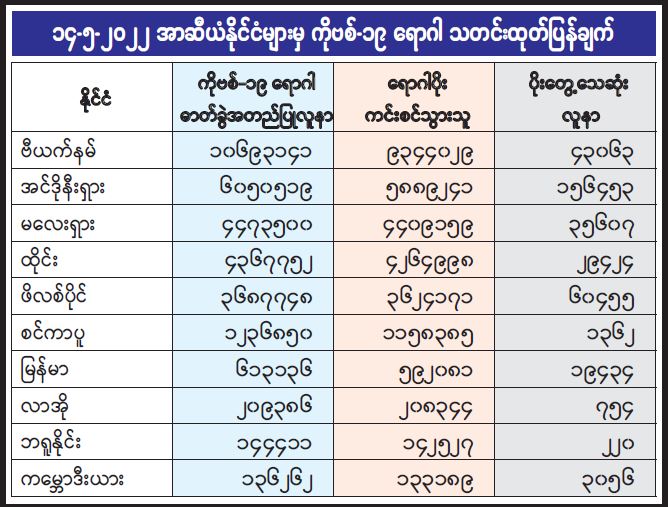 ၁၄-၅-၂၀၂၂ အာဆီယံနိုင်ငံများမှ ကိုဗစ်-၁၉ ရောဂါ သတင်းထုတ်ပြန်ချက်