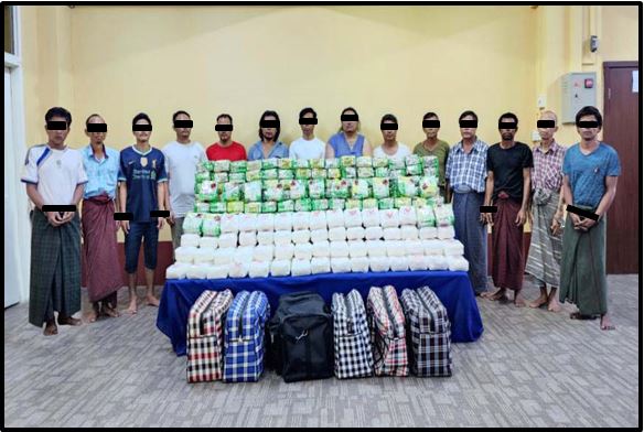 ဖြစ်စဉ်မှာ မူးယစ်ဆေးဝါးတားဆီးနှိမ်နင်းရေးရဲတပ်ဖွဲ့မှ တပ်ဖွဲ့ဝင်များပါဝင်သော ပူးပေါင်းအဖွဲ့သည် မေ ၄ ရက် ည ၇ နာရီခွဲတွင် သတင်းအရ မြောက်ဥက္ကလာပမြို့နယ်၊ (ဈ) ရပ်ကွက်၊ သီရိမင်္ဂလာ ဈေးဝင်းတွင် ယာဉ်မောင်း ဝင်းလှိုင်(ခ)ဦးချယ်နှင့် လှဘော် တို့ ၂ ဦးအား TOYOTA WISH မော်တော်ယာဉ်နှင့်အတူ တွေ့ရှိပြီး ယာဉ်ပေါ်မှ ဒေသကာလ တန်ဖိုးငွေကျပ် ၆ ဒသမ ၂ ဘီလီယံကျော် တန်ဖိုးရှိ အိုက်စ်(မက်သ်အဖက်တမင်း) ၂၅၁ ကီလို သိမ်းဆည်းရမိခဲ့ကြောင်း၊ စစ်ဆေးဖော်ထုတ်ချက်အရ မေ ၆ ရက် မွန်းလွဲ ၁ နာရီတွင် မရမ်းကုန်းမြို့နယ်၊ (၅)ရပ်ကွက်တွင် အိုက်စ် (မက်သ်အဖက်တမင်း)များ သယ်ဆောင်ရာ၌ ပူးပေါင်းပါဝင်သူများဖြစ်ကြသည့် ထွန်းနိုင်နှင့် ဝင်းမြင့် တို့ကိုလည်းကောင်း၊ ညနေ ၄ နာရီခွဲတွင် ကျောင်းကုန်းမြို့အဝင်တိုးဂိတ်တွင် အားဂျီး(ခ)အားရှီး ကိုလည်းကောင်း၊ ညနေ ၅ နာရီတွင် တာချီလိတ်မြို့နယ်၊ လွယ်ချီတုံ ကျေးရွာတွင် ကိုပေါက်(ခ)အောင်မြတ်ဝင်း ကိုလည်းကောင်း၊ ညနေ ၅ နာရီခွဲတွင် ပုသိမ်မြို့နယ်၊ ချောင်းသာ ဟိုတယ်တွင် ထိုင်းနိုင်ငံသား စိုင်းရှန်ဖ(ခ)ဘောန်(ခ)Mr. Piayapong Khammongkhon နှင့် စိုင်းနော်ခမ်း(ခ)အိုက်စိုင်း တို့ကို လည်းကောင်း ဖမ်းဆီးရမိခဲ့ကြောင်း၊ ဆက်လက်စစ်ဆေး ဖော်ထုတ်ချက်များအရ မေ ၇ ရက် နံနက် ၁၁ နာရီတွင် ဒလမြို့နယ်၊ စက်မြေရပ်ကွက်ရှိ ဆိပ်ကမ်းတွင် ဆိုက်ကပ်ထားသော ပင်လယ်ပြင်သုံး ငါးဖမ်းစက်လှေတစ်စင်းနှင့်အတူ ရှိုင်းထက်အောင်(ခ)ဆံရှည်၊ အေးသောင်း၊ မျိုးနိုင်နှင့် သန်းစိုးတို့ကို ထပ်မံဖမ်းဆီးရမိခဲ့ပြီး မေ ၈ ရက် ညနေ ၃ နာရီခွဲတွင် မူးယစ်ဆေးဝါးများ တာဝန်ခံ သယ်ဆောင်မည့် စက်လှေပိုင်ရှင် ဉာဏ်ဝင်း ကိုလည်းကောင်း၊ မေ ၁၁ ရက် နံနက် ၁၀ နာရီတွင် တာချီလိတ်မြို့၊ ပါလျှံ(၁)ရပ်ကွက်တွင် အောင်ကျော်ထွန်း(ခ) အိုက်ဆမ် ကိုလည်းကောင်း အသီးသီးဖမ်းဆီးရမိခဲ့ကြောင်း၊ စစ်ဆေးဖော်ထုတ်ချက်များအရ သိမ်းဆည်းရမိ အိုက်စ်(မက်သ်အဖက်တမင်း) များကို ရှမ်းပြည်နယ်(တောင်ပိုင်း)မှ ရန်ကုန်တိုင်းဒေသကြီးသို့ သယ်ဆောင်ပြီး ထိုမှတစ်ဆင့် ရေကြောင်းလမ်းအသုံးပြု၍ မလေးရှားနိုင်ငံ ရေပိုင်နက်သို့ သယ်ဆောင်မည်ဖြစ်ကြောင်း၊ ဖမ်းဆီးရမိသူများအနက် ထိုင်းနိုင်ငံသား စိုင်းရှန်ဖ(ခ)ဘောန်(ခ) Mr. Piayapong Khammongkhon သည် ထိုင်းနိုင်ငံတွင် လူသတ်မှု၊ မူးယစ်ဆေးဝါးမှုတို့ဖြင့် အလိုရှိတရားခံပြေး ဖြစ်ကြောင်း၊ အမှုတွင် ပူးပေါင်းပါဝင်ပြီး ထွက်ပြေးတိမ်းရှောင်နေသူများ ဖြစ်သည့် စိုင်းဂွမ်(ခ) စိုင်းဂွမ်း၊ စိုင်းအောင်ညွန့်၊ အားချန်နှင့် လူဖီး တို့အပါအဝင် စုစုပေါင်း(၁၈)ဦးကို ဥပဒေအရ အရေးယူထားရှိပြီး မူးယစ်ဆေးဝါး ရောင်းဝယ်လုပ်ကိုင်ရာမှ ရရှိသည့် အကျိုးအမြတ်များနှင့် ပိုင်ဆိုင်မှုများ စိစစ်ဖော်ထုတ်၍ ကွင်း