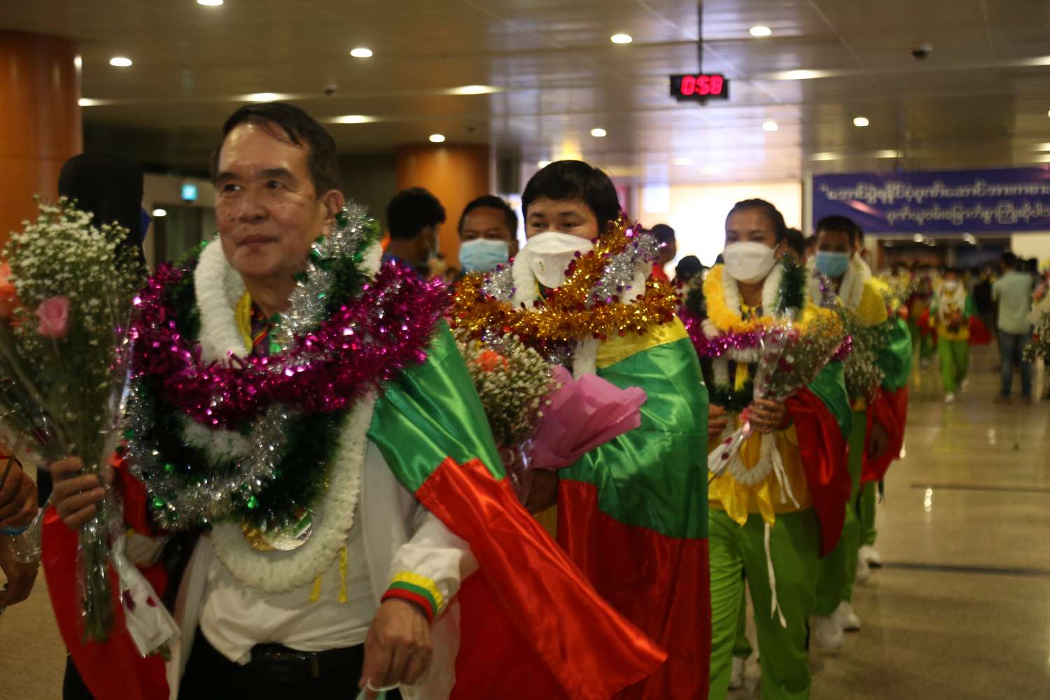 ဗီယက်နမ်နိုင်ငံ၌ ကျင်းပသည့် (၃၁)ကြိမ်မြောက် အရှေ့တောင်အာရှ အားကစားပြိုင်ပွဲသို့ သွားရောက်ယှဉ်ပြိုင်ကြသည့် မြန်မာအားကစားသမားအဖွဲ့သည် ယမန်နေ့ညပိုင်းတွင် မြန်မာ့လေကြောင်း စင်းလုံးငှားလေယာဉ်ဖြင့် ရန်ကုန်မြို့သို့ ပြန်လည်ရောက်ရှိကြသည်။