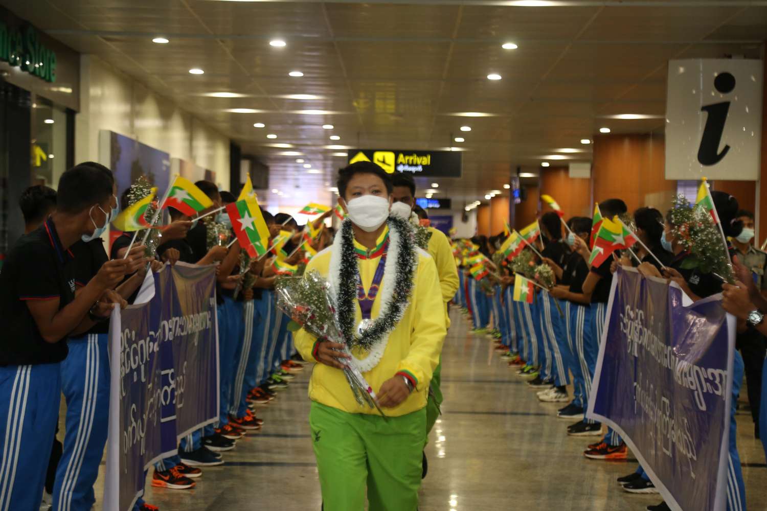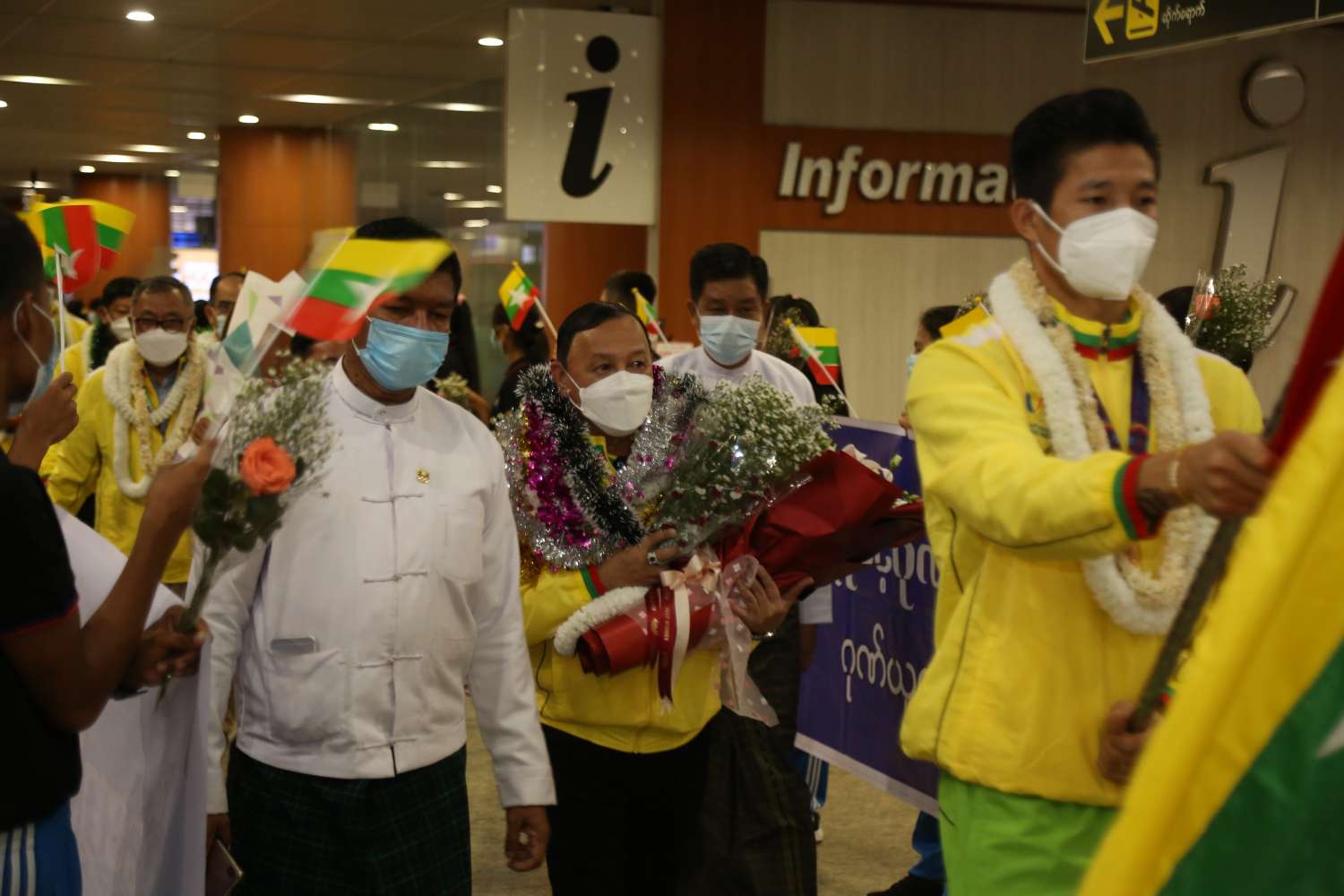 ပြန်လည်ရောက်ရှိလာသည့် မြန်မာအားကစားအဖွဲ့တွင် (၃၁)ကြိမ်မြောက် အရှေ့တောင် အာရှအားကစားပြိုင်ပွဲသို့ ဖိတ်ကြားခံပုဂ္ဂိုလ်အဖြစ် တက်ရောက်ခဲ့သည့် မြန်မာနိုင်ငံ အိုလံပစ်ကော်မတီ အထွေထွေအတွင်းရေးမှူး၊ အားကစားနှင့်လူငယ်ရေးရာဝန်ကြီးဌာန ဒုတိယဝန်ကြီး ဦးမျိုးလှိုင်၊ ရွှေတံဆိပ်ဆုရရှိခဲ့ကြသည့် Kurash အားကစားနည်း (+၈၇)ကီလိုမှ အေးအေးအောင်၊ ဘိလိယက် အားကစားနည်း အမျိုးသားတစ်ဦးချင်းပြိုင်ပွဲမှ ပေါက်စ၊ ဗိုဗီနမ် အားကစားနည်း အမျိုးသမီးနှစ်ယောက်တွဲ လက်နက်မဲ့အပြပြိုင်ပွဲမှ ခိုင်ဝါဖူး၊ မေဟန်နီအောင်လွင်၊ ပိုက်ကျော်ခြင်း အားကစားနည်း Double Women ပြိုင်ပွဲမှ ခင်နှင်းဝေ၊ ဖြူဖြူသန်း၊ ယမုံဇင်၊ ဗိုဗီနမ် အားကစားနည်း လေးယောက်တွဲ အပြပြိုင်ပွဲမှ မနားကွီး၊ အိုက်စိုးလင်း၊ ဇင်လင်းထွန်း၊ ဇော်ဇော်၊ ဗိုဗီနမ်အားကစားနည်း လေးယောက်တွဲအပြပြိုင်ပွဲမှရာဇာထွန်း၊ အောင်ခိုင်လင်း၊ ကျော်သူစိုးအောင်၊ ဟိန်းထက်အောင်၊ ငွေတံဆိပ်ဆုရရှိခဲ့ကြသည့် သေနတ်ပစ်အားကစားနည်း အမျိုသားမီတာ(၅၀) Pistol ပြိုင်ပွဲမှ ရဲထွန်းနောင်၊ မီတာ(၁၀) Air Pistol Mixed Team မှ ရဲထွန်းနောင်၊ ချစ်စိုးနွယ်၊ လှေလှော် အားကစားနည်း အမျိုးသား လေးယောက်လှော် မီတာ(၁၀၀၀) ပြိုင်ပွဲမှ မြင့်ကိုကို၊ ထက်ဝေလွင်၊ စောမိုးအောင်၊ ထွန်းမင်းသန့်၊ အောင်မျိုးသူ၊ ဂျူဒိုအားကစားနည် (-57) Kg မှ ခြူးမြတ်နိုးဝေ၊ ဗိုဗီနမ် အားကစားနည်း တစ်ကိုယ်တော် လက်သိုင်းအပြ ပြိုင်ပွဲမှ ခိုင်ဝါဖူး၊ တစ်ကိုယ်တော် ဓါးရှည်အပြ ပြိုင်ပွဲမှ မေဟန်နီအောင်လွင်၊ တုတ်ရှည်အပြပြိုင်ပွဲမှ တင်ထူးဇော်၊ ဘိလိယက်အားကစားနည်း အမျိုးသား နှစ်ယောက်တွဲပြိုင်ပွဲမှ ပေါက်စ၊ မင်းစည်သူထွန်း၊ လက်ဝှေ့ အားကစားနည်း (-57)Kg ပြိုင်ပွဲမှ နိုင်လတ်၊ ကြေးတံဆိပ်ဆုများရရှိခဲ့ကြသည့် လှေလှော် အားကစားနည်း အမျိုးသမီးကနူး တစ်ယောက်လှော် မီတာ(၁၀၀၀) ပြိုင်ပွဲ၊ အမျိုးသား ကနူး လေးယောက်လှော် မီတာ(၁၀၀၀)ပြိုင်ပွဲ၊ အမျိုးသား ကယက်နှစ်ယောက်လှော် မီတာ(၁၀၀၀) ပြိုင်ပွဲ၊ အမျိုးသားကနူး လေးယောက်လှော် မီတာ(၅၀၀) ပြိုင်ပွဲ၊ အမျိုးသမီးကနူးတစ်ယောက်လှော် မီတာ(၂၀၀)ပြိုင်ပွဲ၊ အမျိုးသမီး ကနူးလေးယောက်လှော် မီတာ(၂၀၀)ပြိုင်ပွဲတို့မှ သက်ဖြိုးနိုင်၊ ဝင်းထိုက်၊ စိုင်းမင်းဝေ၊ သန့်ဇင်ဦး၊ မင်းနိုင်၊ အောင်ဖြိုးဟိန်း၊ ထက်ဝေလွင်၊ မြင့်ကိုကို၊ အောင်မျိုးသူ၊ မျိုးလှိုင်ဝင်း၊ စုဝေဖြိုး၊ မြင့်မြင့်စိုး၊ မိုးမမ၊ စုစုလွင်၊ ပိုက်ကျော်ခြင်း အားကစားနည်း အမျိုးသား နှစ်ယောက်တွဲပြိုင်ပွဲ၊ အမျိုးသား လေးယောက်တွဲပြိုင်ပွဲ၊ အမျိုးသမီး လေးယောက်တွဲပြိုင်ပွဲတို့မှ ဝေလင်းအောင်၊ ကျော်ဇင်လတ်၊ အောင်မျိုးနိုင်၊ အောင်မျိုးဆွေ၊ ဇင်ကိုကို၊ အောင်ရဲဇော်၊ အောင်သူမင်း၊ ယမုံ