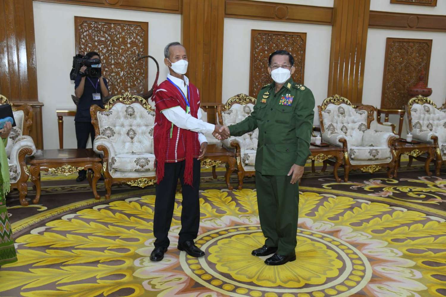 တွေ့ဆုံပွဲအပြီးတွင် နိုင်ငံတော်စီမံအုပ်ချုပ်ရေးကောင်စီဥက္ကဋ္ဌ တပ်မတော်ကာကွယ်ရေးဦးစီးချုပ်က ကရင်အမျိုးသားအစည်းအရုံး၊ ကရင်အမျိုးသားလွတ်မြောက်ရေးတပ်မတော် (ငြိမ်းချမ်းရေးကောင်စီ) KNU/KNLA(PC)ဥက္ကဋ္ဌနှင့်အဖွဲ့ဝင်များအား အမှတ်တရလက်ဆောင် ပစ္စည်းများပေးအပ်ခဲ့ပြီး စုပေါင်းဓာတ်ပုံရိုက်ကြသည်။