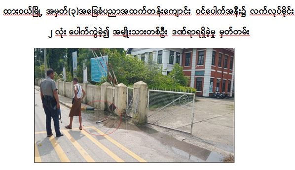 ထို့အတူ မေလ ၂၈ ရက် မွန်းလွဲ ၂ နာရီ ၂၅ မိနစ်အချိန်တွင် တနင်္သာရီတိုင်းဒေသကြီး၊ ထားဝယ်မြို့၊ မြောက်ရွာရပ်၊ အာဇာနည်လမ်းပေါ်ရှိ အမှတ်(၃)အခြေခံပညာအထက်တန်းကျောင်းသို့ PDF အမည်ခံအကြမ်းဖက်သမားများက လက်လုပ်မိုင်းများဖြင့် မိုင်းထောင်ဖောက်ခွဲခဲ့ခြင်းကြောင့် ပေါက်ကွဲမှုဖြစ်ပွားခဲ့ပြီး အမျိုးသားတစ်ဦး ထိခိုက်ဒဏ်ရာရှိခဲ့ကြောင်း သိရှိရသည်။