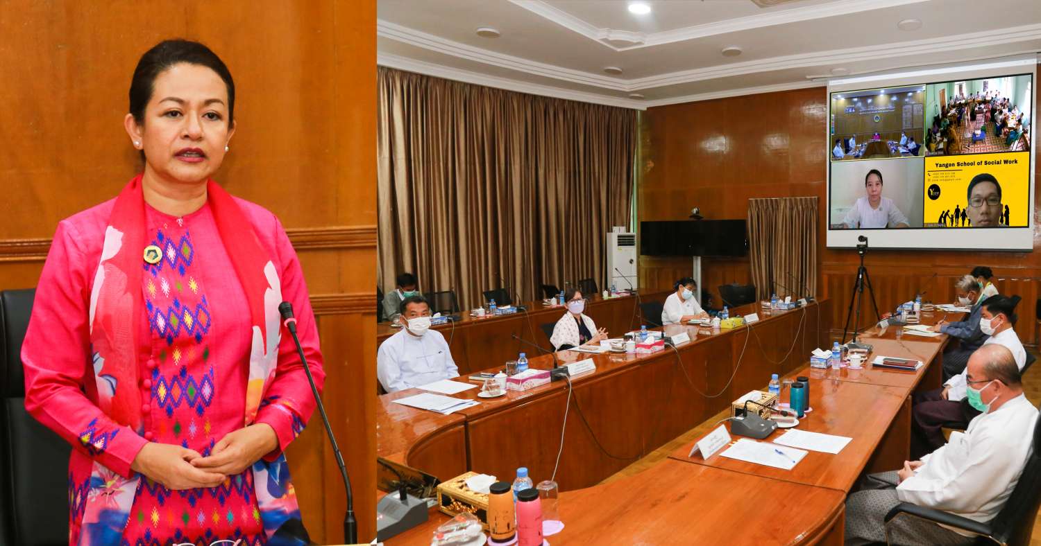 ရခိုင်ပြည်နယ်၊ စစ်တွေမြို့တွင်ဖွင့်လှစ်မည့် လူမှုသဟဇာတနှင့် လူမှုပေါင်းစည်းရေးဆိုင်ရာ နည်းပြသင်တန်း၊ သင်တန်းဖွင့်ပွဲအခမ်းအနားကို ယနေ့နံနက်ပိုင်းတွင်ကျင်းပရာ လူမှုဝန်ထမ်း၊ ကယ်ဆယ်ရေးနှင့် ပြန်လည်နေရာချထားရေးဝန်ကြီးဌာန၊ ပြည်ထောင်စုဝန်ကြီး ဒေါက်တာသက်သက်ခိုင်၊ ဒုတိယဝန်ကြီး ဦးအောင်ထွန်းခိုင်၊ အမြဲတမ်းအတွင်းဝန်၊ ညွှန်ကြားရေးမှူးချုပ်များနှင့် ဌာနမှတာဝန်ရှိပုဂ္ဂိုလ်များ၊ စစ်တွေမြို့မှ In person တက်ရောက်ကြသည့် သင်တန်းသား၊ သင်တန်းသူများ၊ Online ဖြင့် ဆွေးနွေး ပို့ချမည့်နည်းပြများ တက်ရောက်ကြသည်။