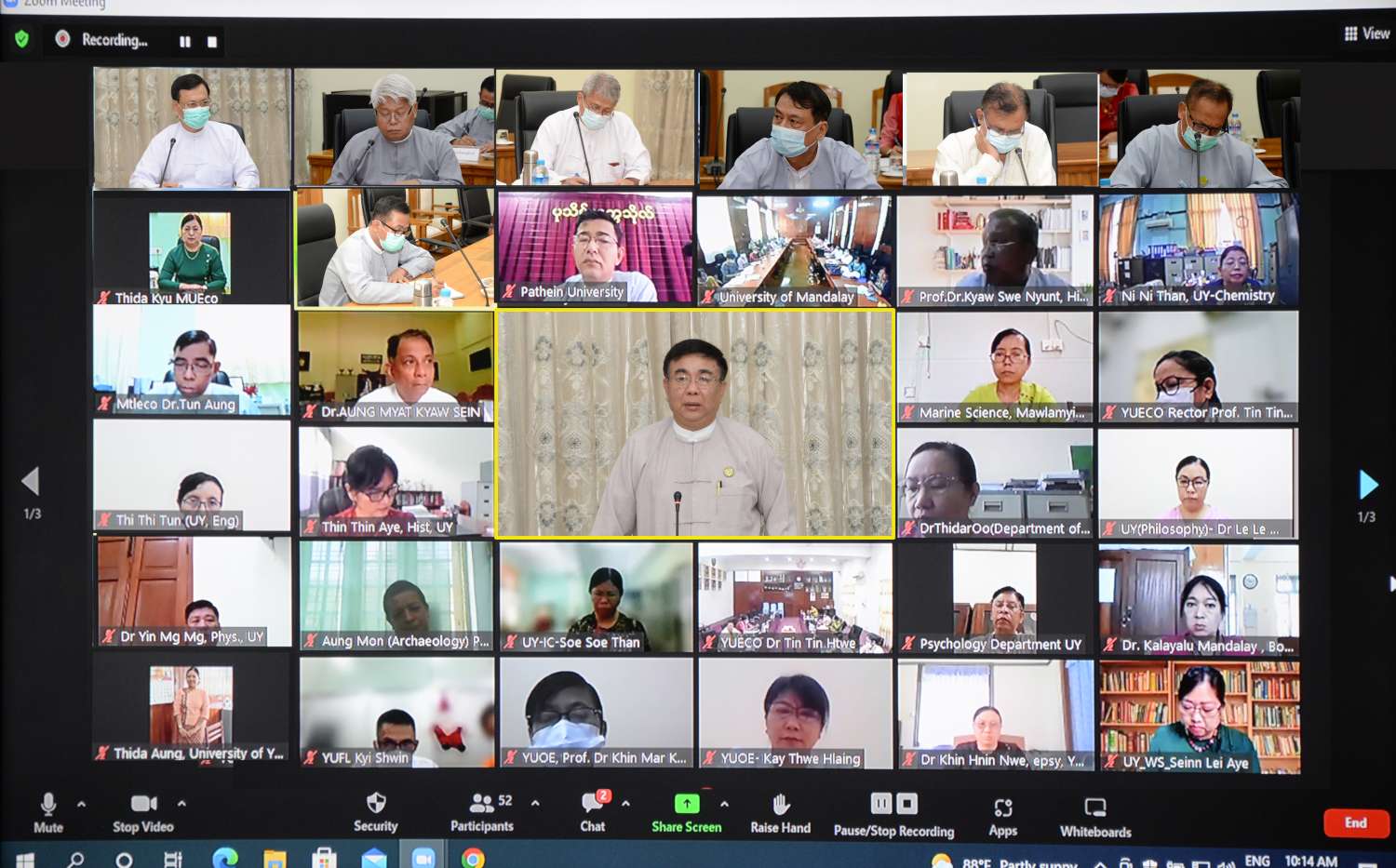 အစည်းအဝေးတွင် ပြည်ထောင်စုဝန်ကြီး ဒေါက်တာညွန့်ဖေက ၂၀၂၂ ခုနှစ် တက္ကသိုလ်ဝင် စာမေးပွဲအောင်မြင်သည့် ကျောင်းသား ကျောင်းသူများအတွက် တက္ကသိုလ်များတွင် ပုံမှန်သင်ယူ နေကျ ဘာသာရပ်များအပြင် ဒေသအကျိုးပြု၊ နိုင်ငံအကျိုးပြုသည့် အသုံးချဘာသာရပ်များ ထည့်သွင်းဖွင့်လှစ်သင်ကြားနိုင်ရေး၊ တက္ကသိုလ်များတွင် ပါရဂူဘွဲ့ သင်တန်းများ ဖွင့်လှစ် သင်ကြားနိုင်ရေးနှင့် ဝိဇ္ဇာဘွဲ့ (ဥပဒေပညာ)နှင့် ဝိဇ္ဇာဘွဲ့ (စီးပွားရေးပညာ) ဘာသာရပ်များ တိုးချဲ့ဖွင့်လှစ်သင်ကြား နိုင်ရေးကိစ္စရပ်များကို ဆွေးနွေးညှိနှိုင်းမည်ဖြစ်ကြောင်း၊ ၂၀၂၂ ခုနှစ် တက္ကသိုလ် ဝင်ခွင့်လမ်းညွှန်စာအုပ်တွင် ထည့်သွင်းဖော်ပြရမည့် အချက်အလက်များကို ညှိနှိုင်း ဆုံးဖြတ်ကြမည်ဖြစ်ကြောင်း။