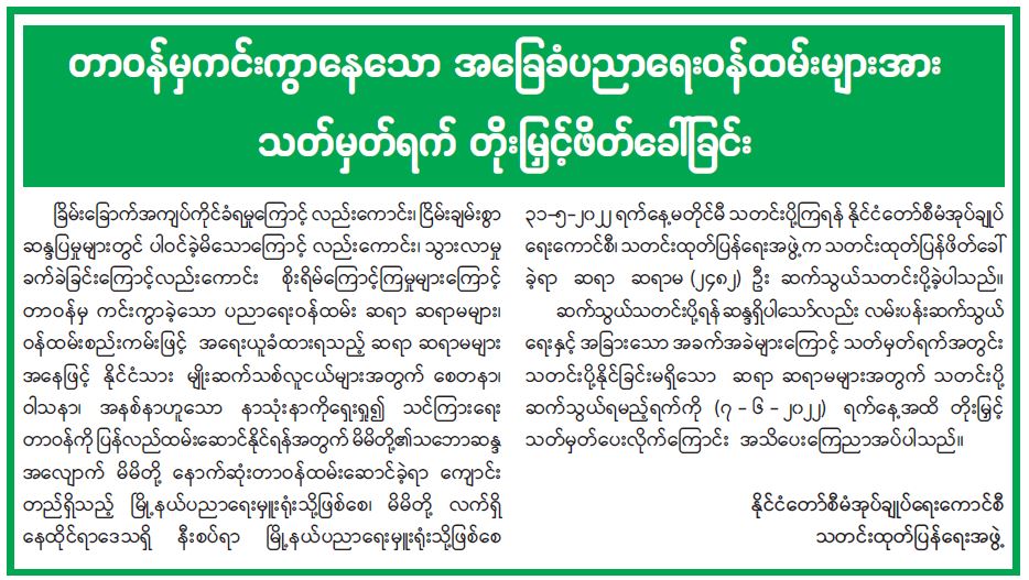 ရန်ကုန်မြို့နှင့် မန္တလေးမြို့အတွက် ရည်ညွှန်းလက်ကားဈေးနှုန်းများနှင့် ပြည်ထောင်စုနယ်မြေ နေပြည်တော်၊ တိုင်းဒေသကြီး/ပြည်နယ် မြို့တော်များအတွက် ရည်ညွှန်းလက်လီဈေးနှုန်းများ