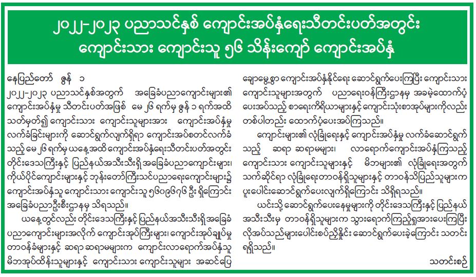 ၂၀၂၂-၂၀၂၃ ပညာသင်နှစ် ကျောင်းအပ်နှံရေးသတင်းပတ်အတွင်း ကျောင်းသား ကျောင်းသူ ၅၆ သိန်းကျော် ကျောင်းအပ်နှံ 06/02/2022