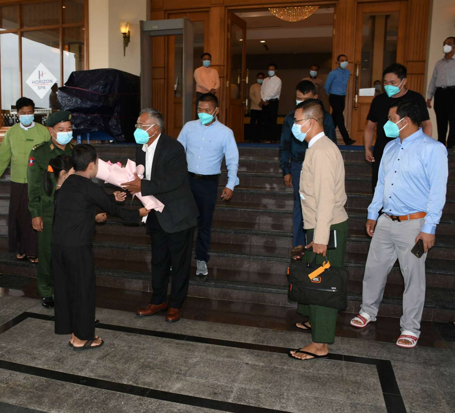 နိုင်ငံတော်စီမံအုပ်ချုပ်ရေးကောင်စီဥက္ကဋ္ဌ နိုင်ငံတော်ဝန်ကြီးချုပ် ဗိုလ်ချုပ်မှူးကြီးမင်းအောင်လှိုင်၏ ငြိမ်းချမ်းရေးဆွေးနွေးရန် ဖိတ်ခေါ်ကမ်းလှမ်းမှုအရ နေပြည်တော်သို့ရောက်ရှိနေသည့် “ဝ” ပြည် သွေးစည်းညီညွတ်ရေးပါတီ (UWSP) ဒုတိယဥက္ကဋ္ဌ၊ ဆွေးနွေးရေးအဖွဲ့ ခေါင်းဆောင် ဦးလော့ယာကုဦးဆောင်သော ငြိမ်းချမ်းရေးကိုယ်စားလှယ်အဖွဲ့သည် ယနေ့နံနက် ၇ နာရီခွဲတွင် နေပြည်တော်မှ မော်တော်ယာဉ်များဖြင့် ပြန်လည်ထွက်ခွာသွားသည်။