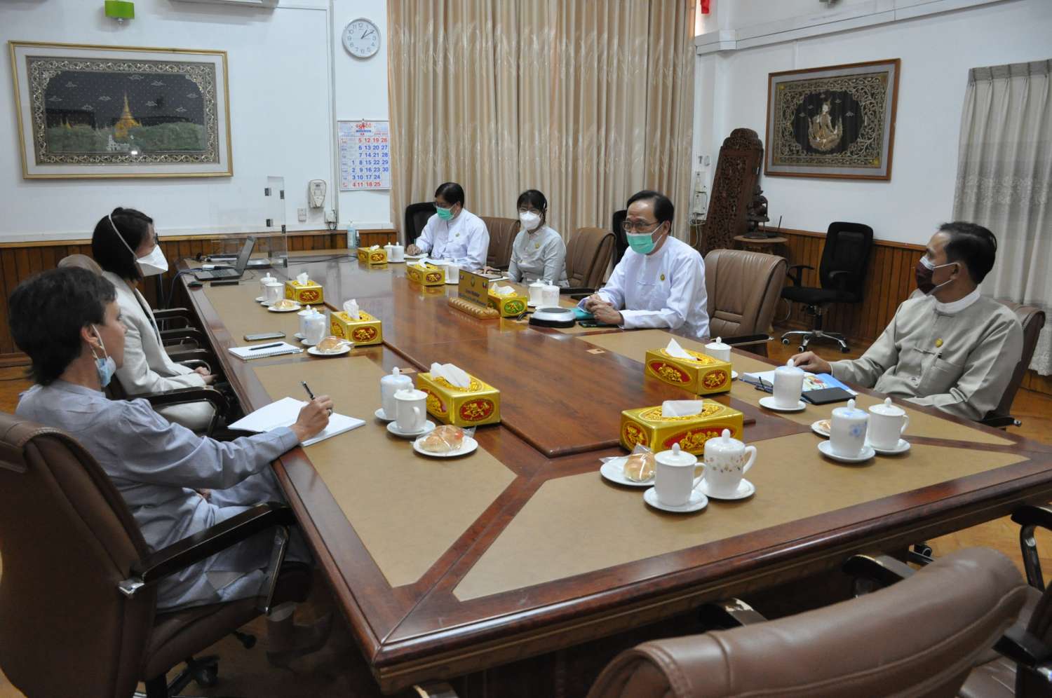 ကျန်းမာရေးဝန်ကြီးဌာန၊ ပြည်ထောင်စုဝန်ကြီး ဒေါက်တာသက်ခိုင်ဝင်းသည် THE GLOBAL FUND မှ အကြီးတန်းရန်ပုံငွေ စီမံခန့်ခွဲမှုမန်နေဂျာ၊ Mrs. Izaskun Gavira ဦးဆောင်သောအဖွဲ့အား ယမန်နေ့ နံနက်ပိုင်းက နေပြည်တော်ရှိ ကျန်းမာရေးဝန်ကြီးဌာန ဧည့်ခန်းမ၌ လက်ခံတွေ့ဆုံသည်။