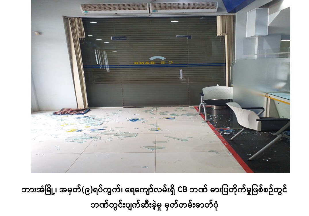 ထိုသို့ အကြမ်းဖက်လုပ်ရပ်များ လုပ်ဆောင်လျက်ရှိရာ ကရင်ပြည်နယ်၊ ဘားအံမြို့ရှိ CB ဘဏ်ခွဲ(၂)အား ယနေ့ညနေပိုင်းတွင် လက်နက်ဖြင့် ခြိမ်းခြောက်၍ ဓားပြ တိုက်လုယက်သွားသည့် PDF အမည်ခံ အကြမ်းဖက်သမားများအား ယနေ့ ညနေ ၃ နာရီ ၃၀ မိနစ်ခန့်တွင် ဘားအံ-မြိုင်ကြီးငူ ကားလမ်း၊ ကြို့ချောင်းကျေးရွာ စစ်ဆေးရေး ဂိတ်အနီး၌ လုယက်ယူဆောင်သွားသည့် ငွေကျပ်သိန်း ၁၂၀၀ ကျော်၊ လက်နက်ခဲယမ်းများနှင့်အတူ အချိန်တို နာရီပိုင်းအတွင်း ဖမ်းဆီးရမိခဲ့ကြောင်း သိရှိရသည်။