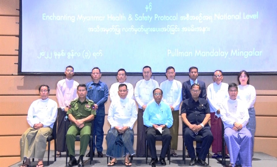ဆက်လက်၍ ပြည်ထောင်စုဝန်ကြီးက Enchanting Myanmar Health and Safety Protocol အရ အမျိုးသားအဆင့်ရရှိသည့် ဟိုတယ်များအား အသိအမှတ်ပြုလက်မှတ်များ ပေးအပ်ခဲ့ပြီး ပြည်ထောင်စုဝန်ကြီးနှင့်ဝန်ကြီးချုပ်တို့သည် ဟိုတယ်ဝန်ထမ်းများကို တတိယအကြိမ်မြောက် ကိုဗစ်-၁၉ ကာကွယ်ဆေး Booster Dose ထိုးနှံမှုကို ကြည့်ရှုသည်။
