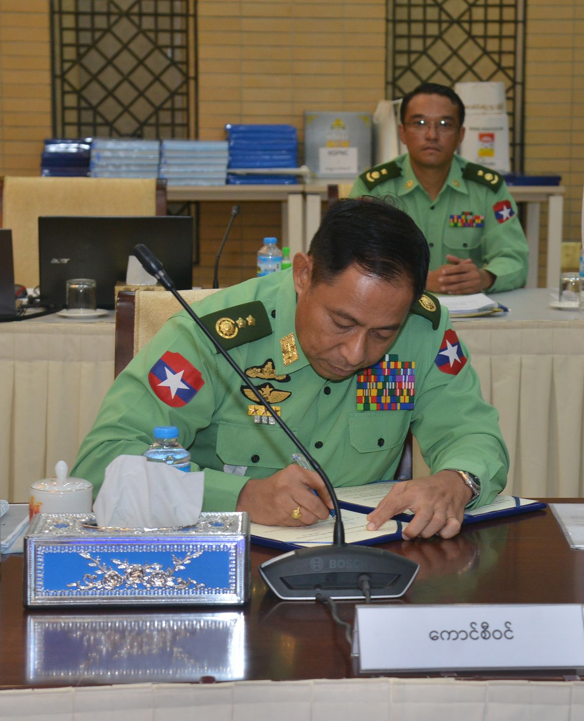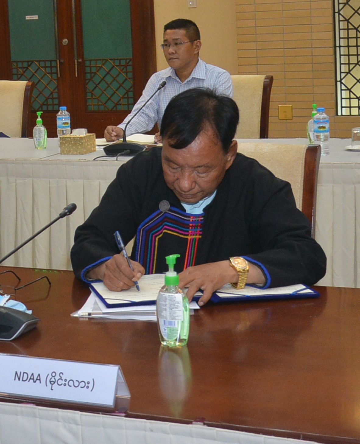 နိုင်ငံတော်၏ငြိမ်းချမ်းရေးဆွေးနွေးရေးအဖွဲ့နှင့် အမျိုးသားဒီမိုကရက်တစ်မဟာမိတ်အဖွဲ့ NDAA (မိုင်းလား) ဒုတိယဥက္ကဋ္ဌဦးဆောင်သောကိုယ်စားလှယ်အဖွဲ့တို့ တွေ့ဆုံဆွေးနွေးပွဲ ဒုတိယနေ့ကို ယနေ့နံနက်ပိုင်းတွင် နေပြည်တော်ရှိ အမျိုးသားစည်းလုံးညီညွတ်ရေးနှင့် ငြိမ်းချမ်းရေးဖော်ဆောင်မှုဗဟိုဌာန အစည်းအဝေး ခန်းမ၌ ကျင်းပသည်။