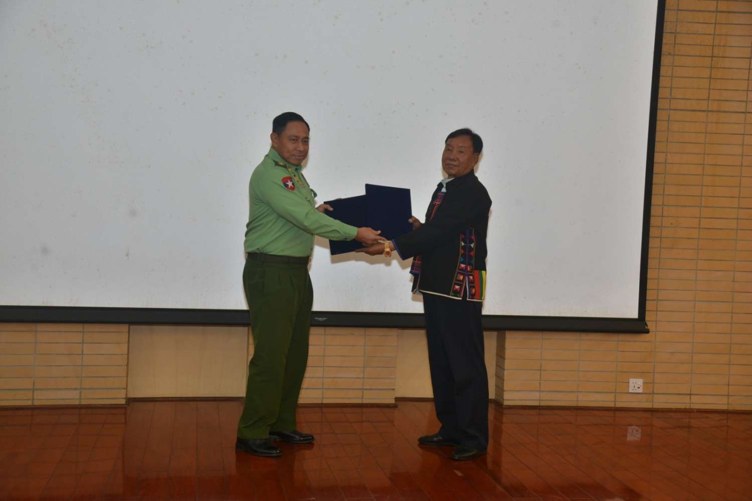 ယင်းနောက် အမျိုးသားဒီမိုကရက်တစ်မဟာမိတ်အဖွဲ့ NDAA (မိုင်းလား) ဒုတိယဥက္ကဋ္ဌ ဦးစန်ပေ့နှင့် နိုင်ငံတော်၏ငြိမ်းချမ်းရေးဆွေးနွေးရေးအဖွဲ့ခေါင်းဆောင် ဒုတိယဗိုလ်ချုပ်ကြီး ရာပြည့်တို့က နိဂုံးချုပ်အမှာစကားပြောကြားခဲ့ပြီး ပြန်ကြားရေးဝန်ကြီးဌာနမှ ထုတ်ဝေသည့် (၇၅) နှစ်မြောက် စိန်ရတုပြည်ထောင်စုနေ့ ဂုဏ်ပြုအခမ်းအနားစာအုပ်၊ မှတ်တမ်းစာအုပ်များ၊ ခေတ်နှင့်အညီ ပြန်လည်ပြုစုထားသည့် မြန်မာ့စွယ်စုံကျမ်း (အတွဲ-၁) တို့နှင့် လက်ဆောင်ပစ္စည်းများ ပေးအပ်ခဲ့ကြောင်း သိရှိရသည်။