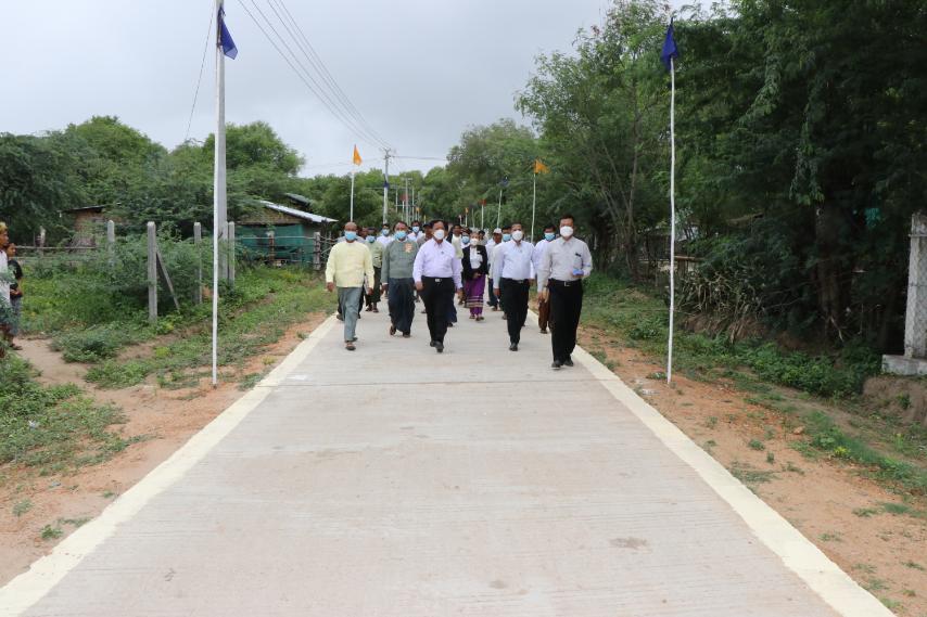 ရှေးဦးစွာ ပြည်ထောင်စုဝန်ကြီးနှင့်အဖွဲ့သည် ကျေးလက်ဒေသဖွံ့ဖြိုးတိုးတက်ရေးဦးစီးဌာနမှ အကောင်အထည်ဖော် ဆောင်ရွက်လျက်ရှိသည့် သာစည်မြို့နယ်၊ ကြက်မောက်ကျေးရွာတွင် ၂၀၂၁-၂၀၂၂ခု ဘဏ္ဍာနှစ် ခြောက်လတာကာလတွင် ကျေးရွာဖွံ့ဖြိုးတိုးတက်ရေးလုပ်ငန်းစီမံကိန်း ထောက်ပံ့ရန်ပုံငွေ၊ ကျေးရွာပြည်သူထည့်ဝင်ငွေ စုစုပေါင်းငွေကျပ် ၁၃၅ ဒသမ ၇ သိန်း အကောင်အထည်ဖော် ဆောင်ရွက်ခဲ့သော လူဦးရေ ၁၄၆၂ ဦး အကျိုးပြုမည့် ကျေးရွာတွင်း ကွန်ကရစ်လမ်းခြင်းလုပ်ငန်း ဆောင်ရွက်ပြီးစီးမှုကို ကြည့်ရှုစစ်ဆေးပြီး ပြည်ထောင်စုဝန်ကြီးက မိမိတို့ဝန်ကြီးဌာနအောက်ရှိ ဦးစီးဌာနများပေါင်းစပ်ကာ စံပြကျေးရွာများ ဖြစ်ပေါ်လာစေရေး ကျေးရွာ၏ အခြေခံအဆောက်အအုံ လိုအပ်ချက်များ၊ စီးပွားရေးလိုအပ်ချက်များ တတ်နိုင်သမျှဖြည့်ဆည်း ဆောင်ရွက်ပေးလျက်ရှိကြောင်း ရှင်းလင်းပြောကြားသည်။