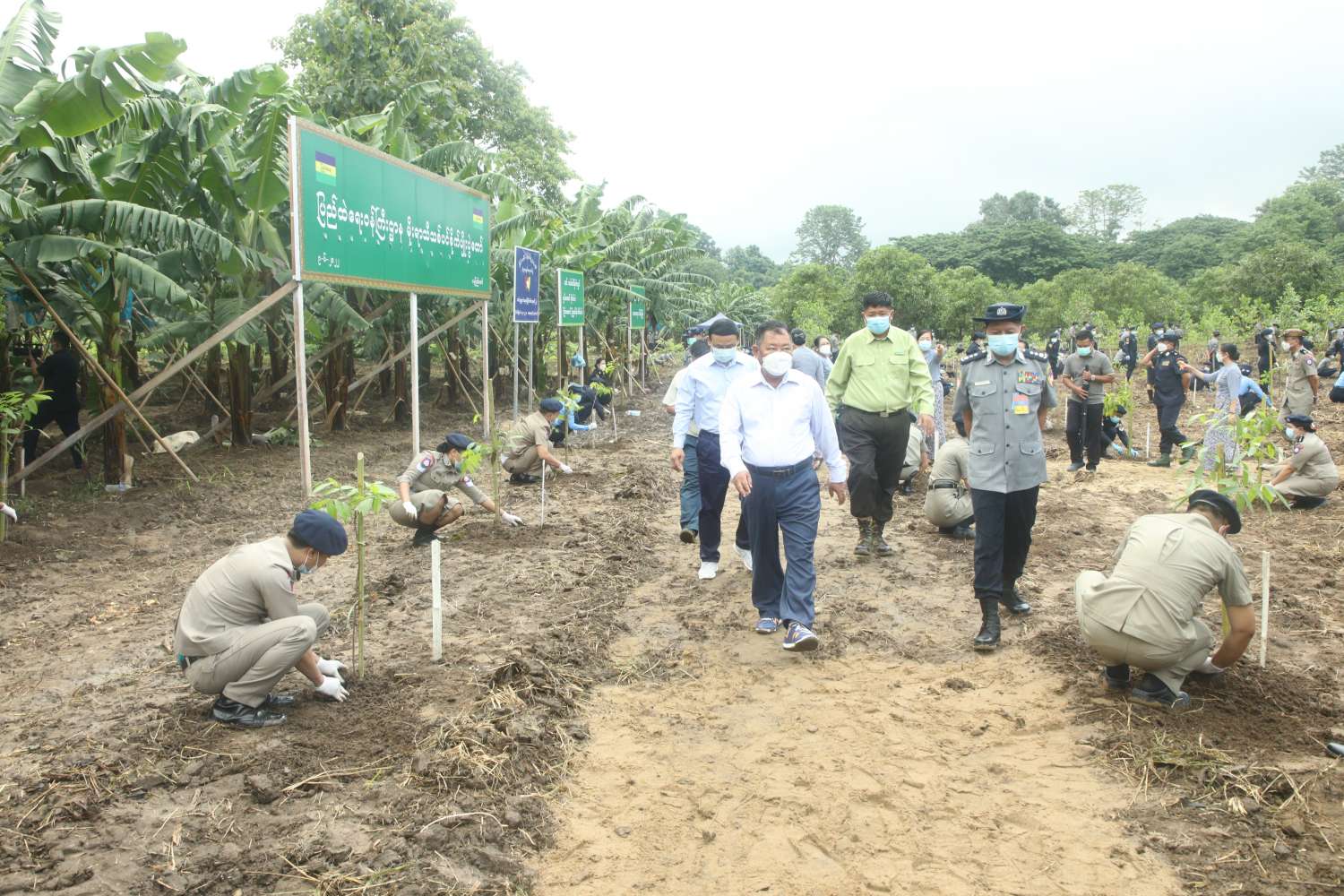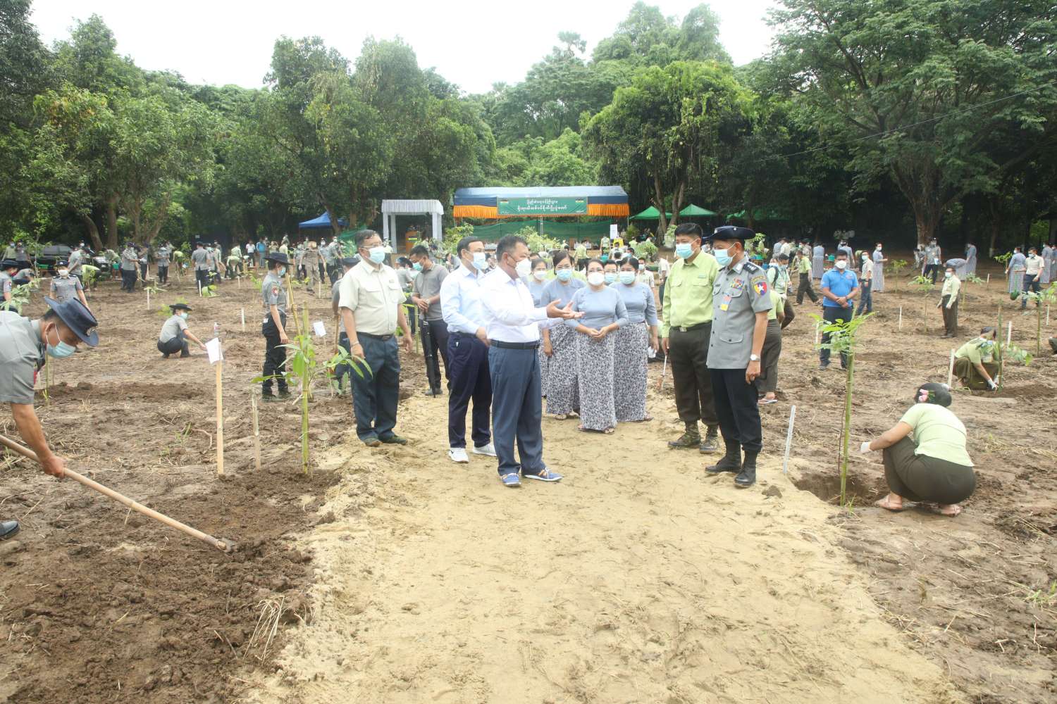 ထို့နောက် နိုင်ငံတော်စီမံအုပ်ချုပ်ရေးကောင်စီအဖွဲ့ဝင်၊ ပြည်ထဲရေးဝန်ကြီးဌာန၊ ပြည်ထောင်စုဝန်ကြီး ဒုတိယဗိုလ်ချုပ်ကြီးစိုးထွဋ်နှင့်ဇနီးတို့က ရတနာတန်းဝင်ကျွန်းပင်ကို စိုက်ပျိုးကြသည်။ ဆက်လက်၍ ဒုတိယဝန်ကြီး ဗိုလ်ချုပ်စိုးတင့်နိုင်နှင့်ဇနီး၊ ဒုတိယဝန်ကြီး မြန်မာနိုင်ငံရဲတပ်ဖွဲ့ရဲချုပ် ဗိုလ်ချုပ် ဇင်မင်းထက်၏ဇနီး၊ အမြဲတမ်းအတွင်းဝန်နှင့်ဇနီး၊ တပ်ဖွဲ့/ဦးစီးဌာနများမှ ညွှန်ကြားရေးမှူးချုပ်များနှင့်ဇနီးများ၊ ဌာနဆိုင်ရာဝန်ထမ်းများက သတ်မှတ်နေရာအသီးသီးတွင် သစ်ပင်များကိုစိုက်ပျိုးခဲ့ကြသည်။