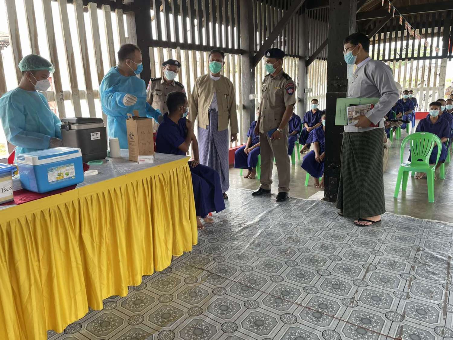 ဗဟိုအကျဉ်းထောင်နှင့် အချုပ်ထောင်တို့ကို ကြည့်ရှုစစ်ဆေးစဉ် အကျဉ်းသား၊ အကျဉ်းသူ၊ အချုပ်သား၊ အချုပ်သူများ၏ အိပ်ဆောင်များ၊ ထောင်တွင်းဆေးရုံ/ ဆေးခန်း၊ တိုက်ခန်းများ၊ စာကြည့်တိုက်၊ စားဖိုကြီး၊ ရိက္ခာဂိုထောင်၊ ရေသန့်စက်၊ သောက်ရေနှင့် သုံးရေကန်များ၊ မိလ္လာမျာ းသန့်ရှင်းမှုရှိ၊ မရှိတို့ကို လည်းကောင်း၊ အကျဉ်းသား/ အချုပ်သားများကို ကိုဗစ်-၁၉ ရောဂါကာကွယ်ဆေး ထိုးနှံနေမှုများကို လည်းကောင်း ကြည့်ရှုစစ်ဆေးသည်။