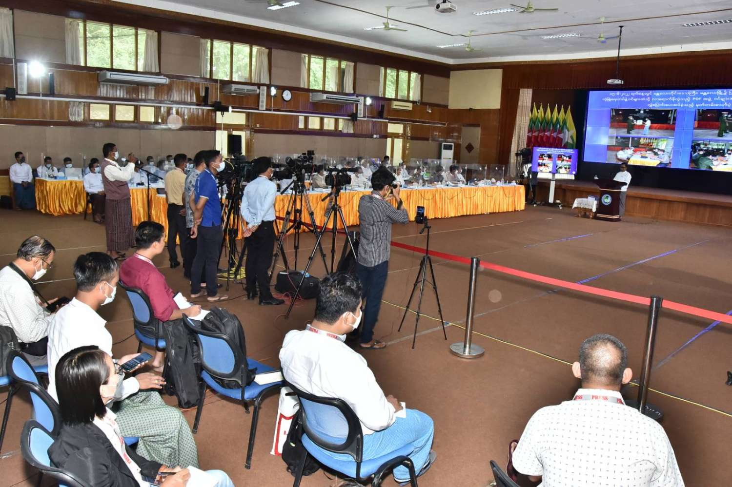 ထို့နောက် ပြည်ထောင်စုရွေးကောက်ပွဲကော်မရှင်အဖွဲ့ဝင် ဦးခင်မောင်ဦးက မဲဆန္ဒရှင်စာရင်းများ ပြည်စုံမှန်ကန်ရေး အတွက် မြေပြင်လူဦးရေစာရင်းနှင့် တိုက်ဆိုင်စစ်ဆေးခြင်းများ ဆောင်ရွက်ပြီးစီးမှုနှင့် နိုင်ငံရေးပါတီများ စစ်ဆေးခြင်းအပါအဝင် ပြည်ထောင်စုရွေးကောက်ပွဲကော်မရှင်က ဆောင်ရွက်လျက်ရှိသည့်လုပ်ငန်းစဉ်များကို PowerPoint Presentation ဖြင့် ရှင်းလင်းပြောကြားသည်။