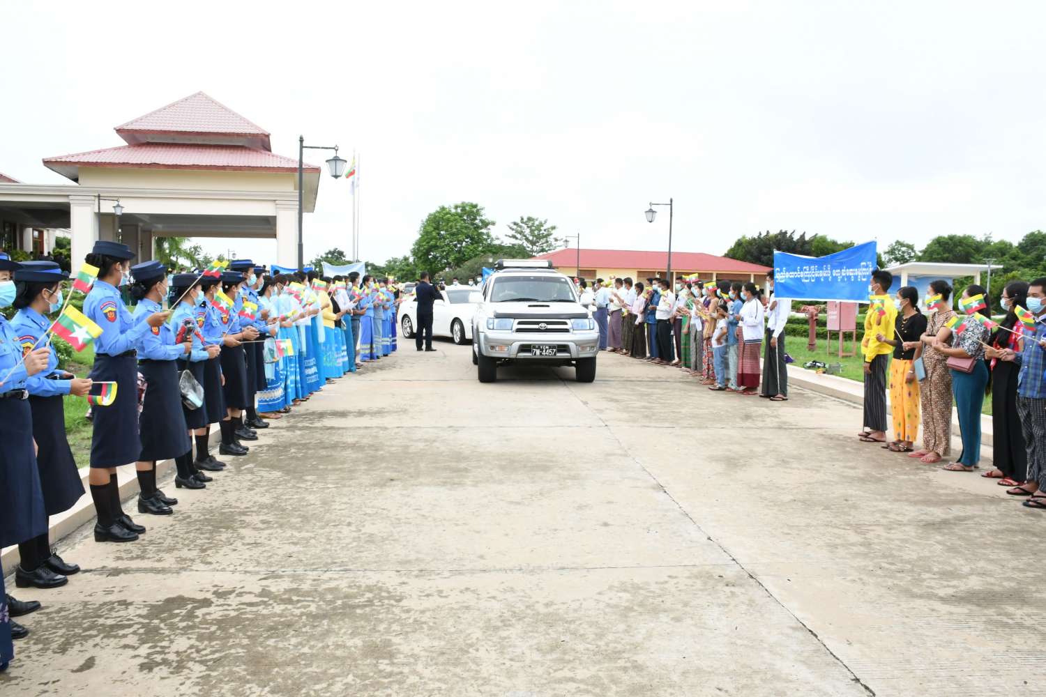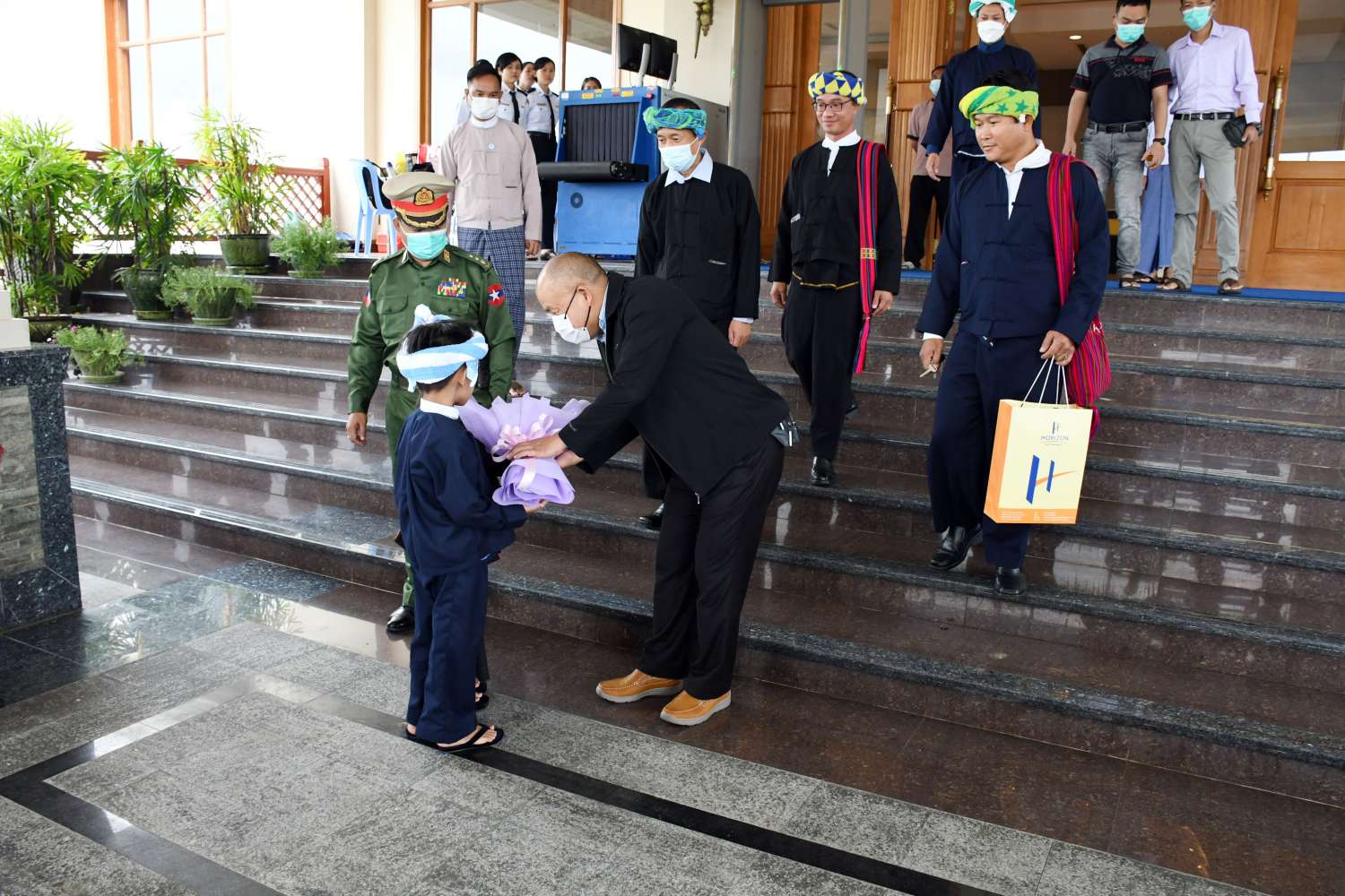 အဆိုပါ ပအိုဝ်းအမျိုးသားလွတ်မြောက်ရေးအဖွဲ့ချုပ်(PNLO)မှ ဒုတိယဥက္ကဋ္ဌ(၁) ခွန်ထွန်းတင် ဦးဆောင်သော ငြိမ်းချမ်းရေးကိုယ်စားလှယ်အဖွဲ့အား အမျိုးသားစည်းလုံးညီညွတ်ရေးနှင့် ငြိမ်းချမ်းရေးဖော်ဆောင်မှု ညှိနှိုင်းရေးကော်မတီအဖွဲ့ဝင်နှင့် တာဝန်ရှိသူများ၊ သာသနာရေးနှင့် ယဉ်ကျေးမှုဝန်ကြီးဌာန၊ အနုပညာဦးစီးဌာနမှ တိုင်းရင်းသား၊ တိုင်းရင်းသူများ၊ ဌာနဆိုင်ရာဝန်ထမ်းများ၊ ငြိမ်းချမ်းရေးကိုလိုလားသည့် ဒေသခံပြည်သူများက “ထာဝရငြိမ်းချမ်းရေးကို ရရှိရေးသည် ပြည်သူတစ်ရပ်လုံး၏ ဆန္ဒအစစ်အမှန်ဖြစ်သည်၊ ငြိမ်းချမ်းရေးရရှိရေးသည် နိုင်ငံသားအားလုံး၏ ဆန္ဒအမှန်ဖြစ်သည်၊ ပြည်ထောင်စုကြီးငြိမ်းချမ်းဖို့ တွေ့ဆုံဆွေးနွေးကြပါစို့၊ တိုင်းရင်းသားတွေစည်းလုံးမှ ငြိမ်းချမ်းတည်ငြိမ်အေးချမ်းရ” စသည့် စာသားပါဆိုင်းဘုတ်များ ကိုင်ဆောင်၍လည်းကောင်း၊ နိုင်ငံတော်အလံငယ်များကိုင်ဆောင်၍လည်းကောင်း နေပြည်တော်ရှိ Horizon Lake View Resort ၌ ပို့ဆောင်နှုတ်ဆက်ခဲ့ကြကြောင်း သိရသည်။