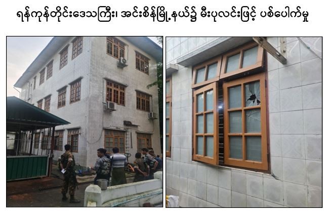 ထိုသို့ လုပ်ဆောင်လျက်ရှိရာ ဇွန်လ ၁၉ ရက်နေ့ ညနေ ၆ နာရီခန့်တွင် ရန်ကုန်တိုင်းဒေသကြီး၊ အင်းစိန်မြို့နယ်၊ ရွာမအနောက်ရပ်ကွက်၊ မြို့ပတ်လမ်းရှိ ရွာမပရိယတ္တိစာသင်တိုက်အား မီးပုလင်းဖြင့် ပစ်ခတ်သွားခဲ့ကြောင်း သိရှိရသဖြင့် လုံခြုံရေးတပ်ဖွဲ့ဝင်များက သွားရောက်စစ်ဆေးခဲ့ရာ ဆိုင်ကယ်စီးနင်းလာသည့် အကြမ်းဖက်သမားအမျိုးသား ၂ ဦးက အဆိုပါစာသင်တိုက်ဘေးရှိ မြို့ပတ်လမ်းဘက်မှ မီးပုလင်း ၂ ခုဖြင့် ပစ်ပေါက်ထွက်ပြေးသွားခဲ့သဖြင့် သုံးထပ်ကျောင်းဆောင်အုတ်နံရံအား ထိမှန်ခဲ့ပြီး ဒုတိယထပ်ရှိ ပြူတင်းပေါက်မှန် ၁ ချပ်ကွဲအက် ပျက်စီးခဲ့ကြောင်း သိရသည်။