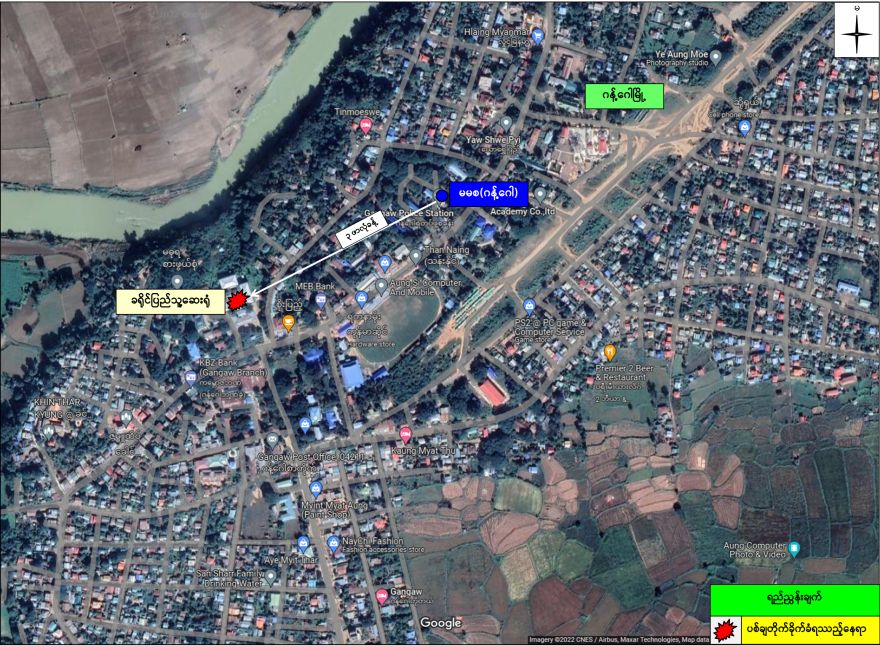 ထိုသို့ ပြုလုပ်လျက်ရှိရာ ဇွန်လ ၂၁ ရက်နေ့ နံနက် ၈ နာရီအချိန်ခန့်တွင် မကွေးတိုင်းဒေသကြီး၊ ဂန့်ဂေါမြို့နယ်၊ မြောက်ကုန်းရပ်ကွက်ရှိ ခရိုင်ပြည်သူ့ဆေးရုံကြီးအား PDF အမည်ခံ အကြမ်းဖက် အဖွဲ့က Drone ယာဉ်အသုံးပြု၍ လက်လုပ်ဗုံး ၁ လုံးဖြင့် ချိတ်ဆွဲပစ်ချတိုက်ခိုက်ခဲ့သဖြင့် ဆေးရုံဝင်းအတွင်းရှိ ပြင်ပလူနာဆောင်ရှေ့ ပေ ၂၀ ခန့်အကွာသို့ ကျရောက်ပေါက်ကွဲခဲ့ကြောင်း သိရှိရသည်။